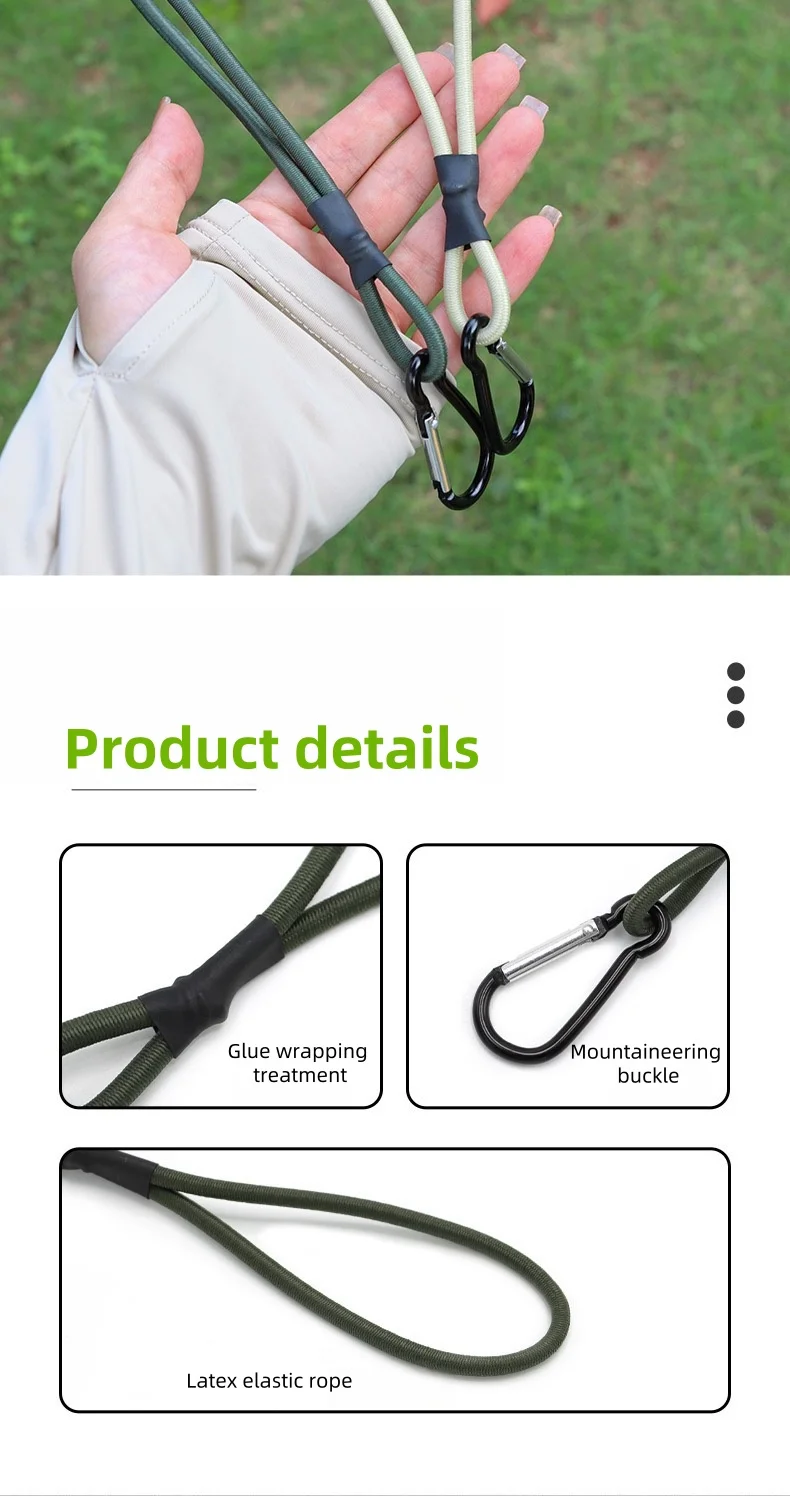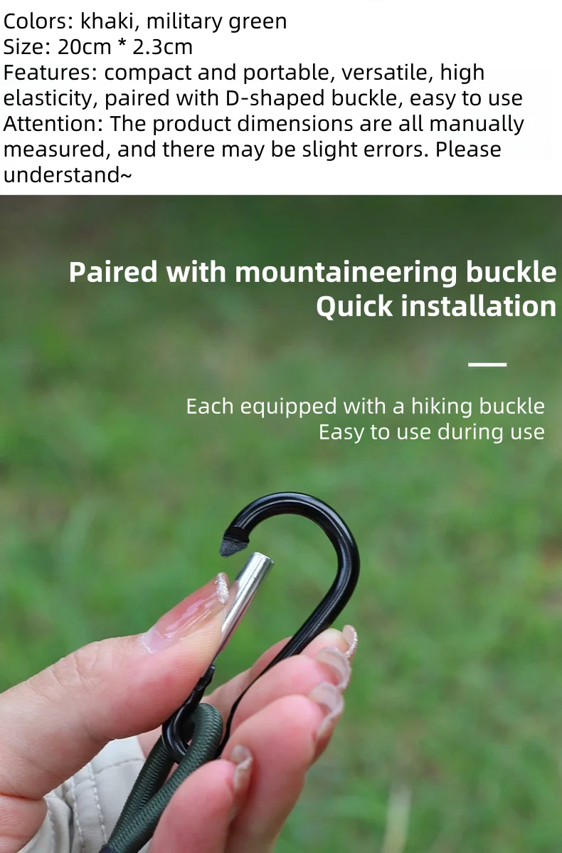 Gancho de montañismo de cuerda elástica para exteriores, hebilla de cuerda elástica portátil multifuncional para acampar, cuerda de tracción para cortina, clavo de tierra