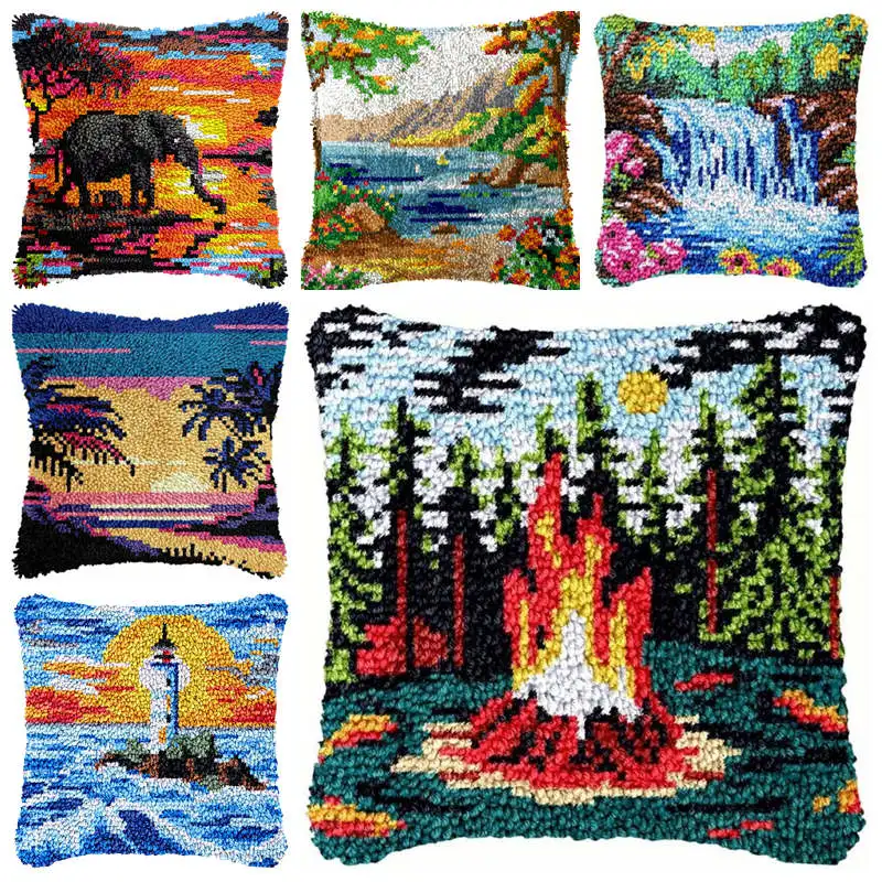 Gancho de pestillo para acampar al aire libre, almohada Smyrna, paquete de ganchos, almohada bordada de punto, juego de bordado de alfombra, Kit de alfombra con gancho de pestillo