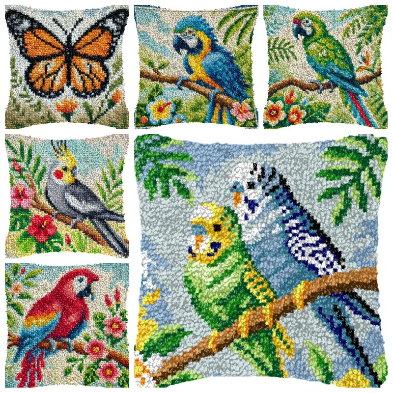 Gancho de pestillo de pájaro de búho/Boreja, ganchos de almohada, tejido a mano, bordado, alfombra, almohada, Kit de gancho de pestillo bordado, paquete Smyrna
