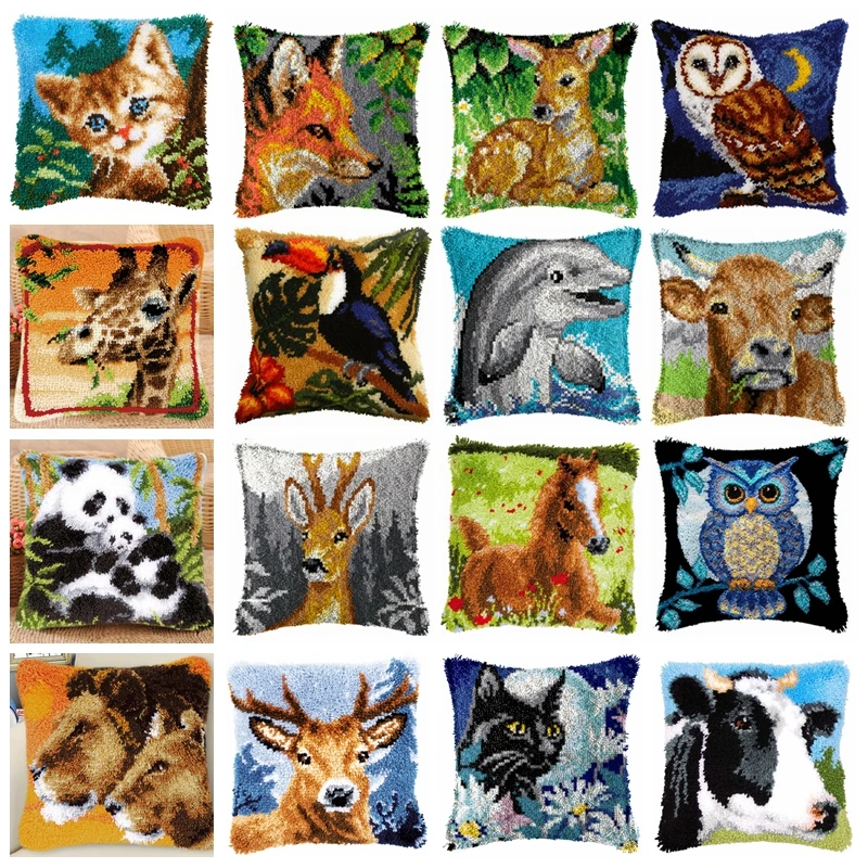 Animal Series Latch Hook Hand Knitted Embroidered Pillow Unfinished Embroidery Material Latch Hook Rug Kits Beginner DIY Supply