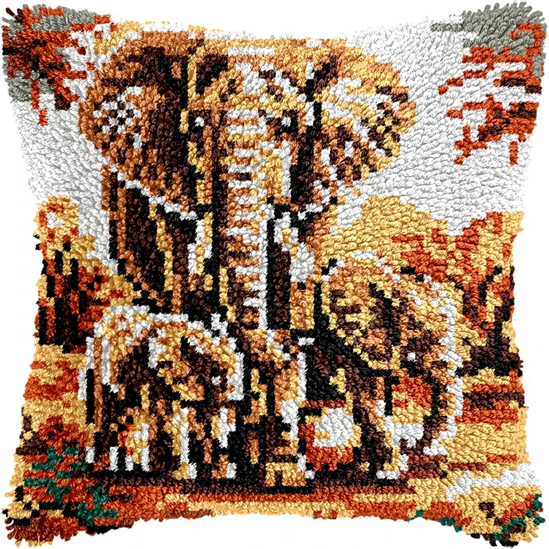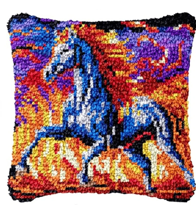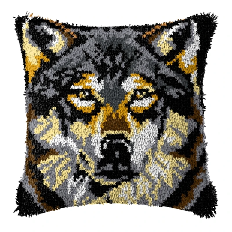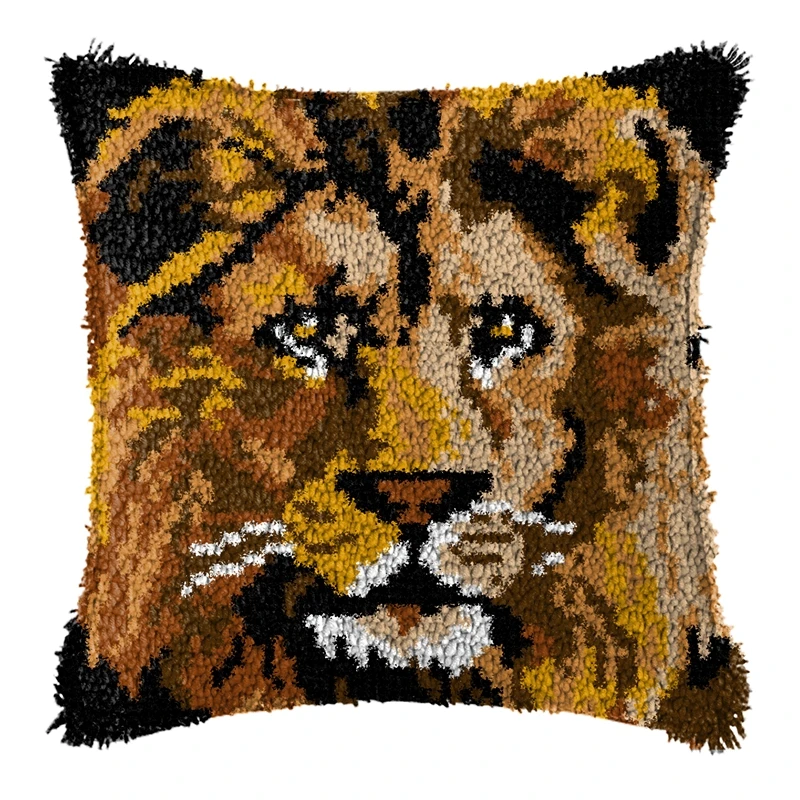 Serie de animales ferrosos, gancho de pestillo, almohada bordada tejida a mano, Material de bordado sin terminar, gancho de pestillo, Kits de alfombras para principiantes