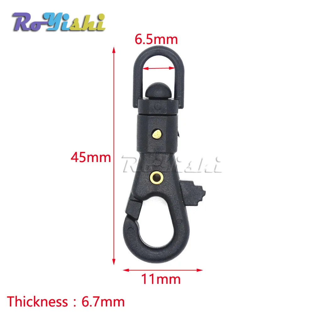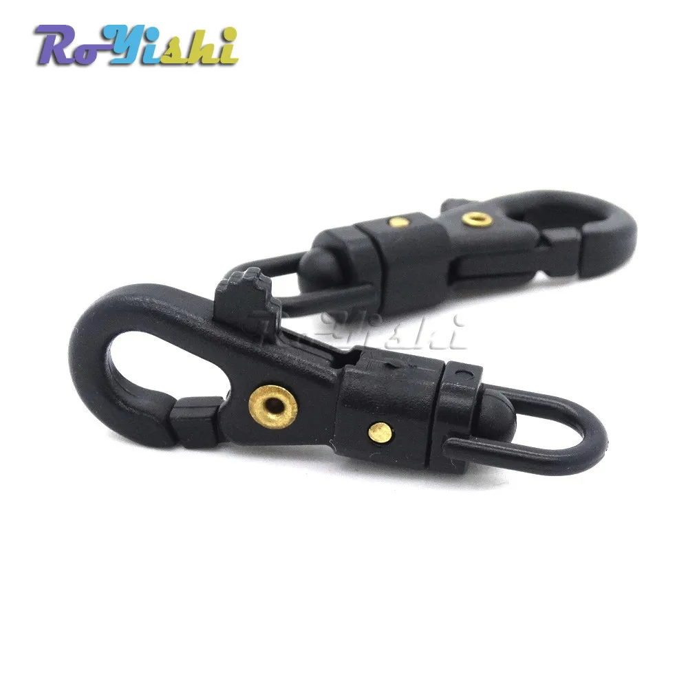 Gancho de presión giratorio de plástico para tejer, hebillas de cordón de Paracord, correas para mochila, color negro