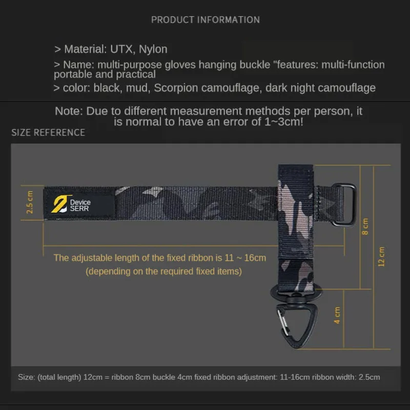 Este gancho de choque táctico puede colgar sus kits tácticos en el casco táctico, cinturón o chaleco que tiene sistema MOLLE. También puede usar la correa de las correas para fijar algunos accesorios pequeños como guantes y cordones.