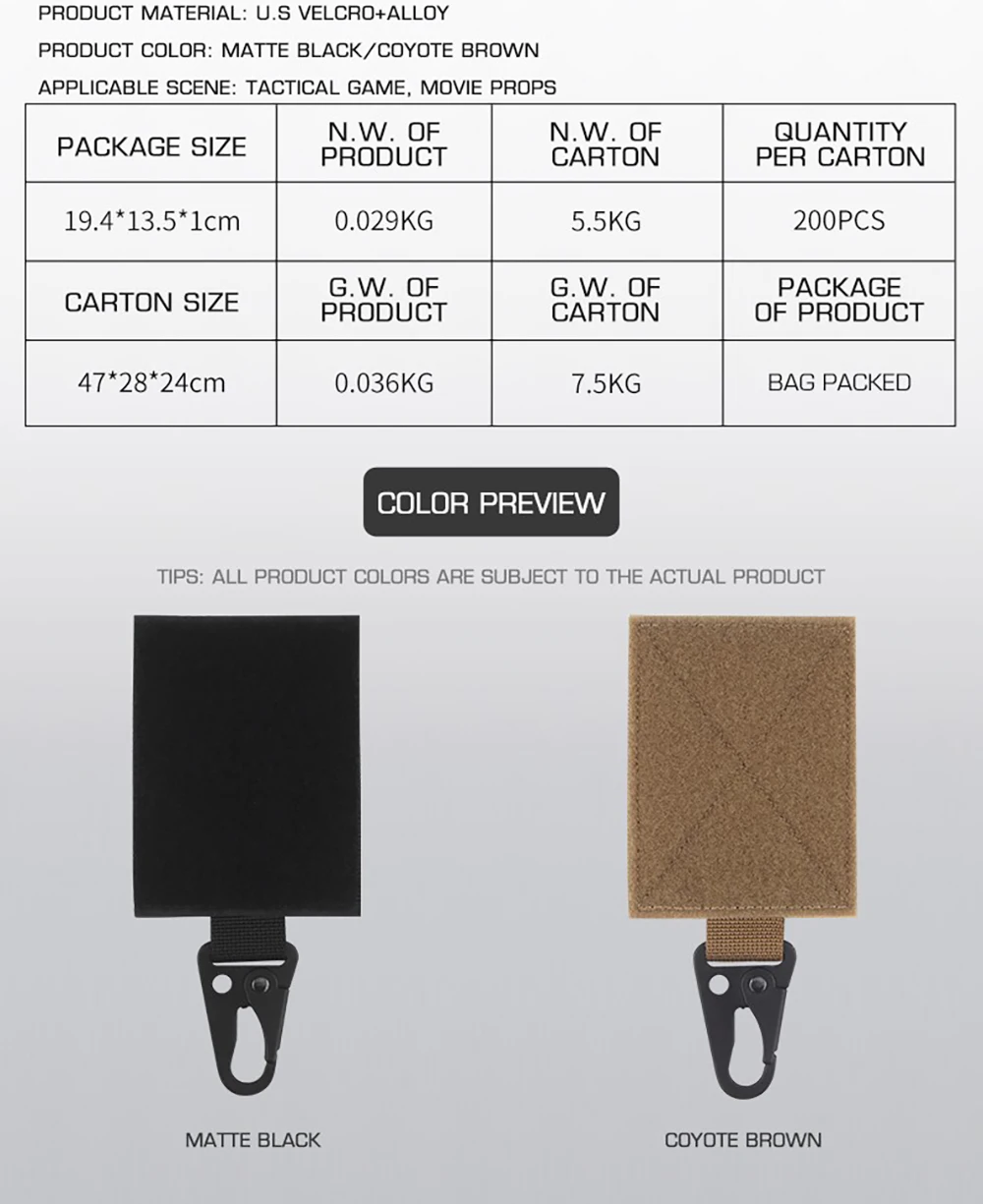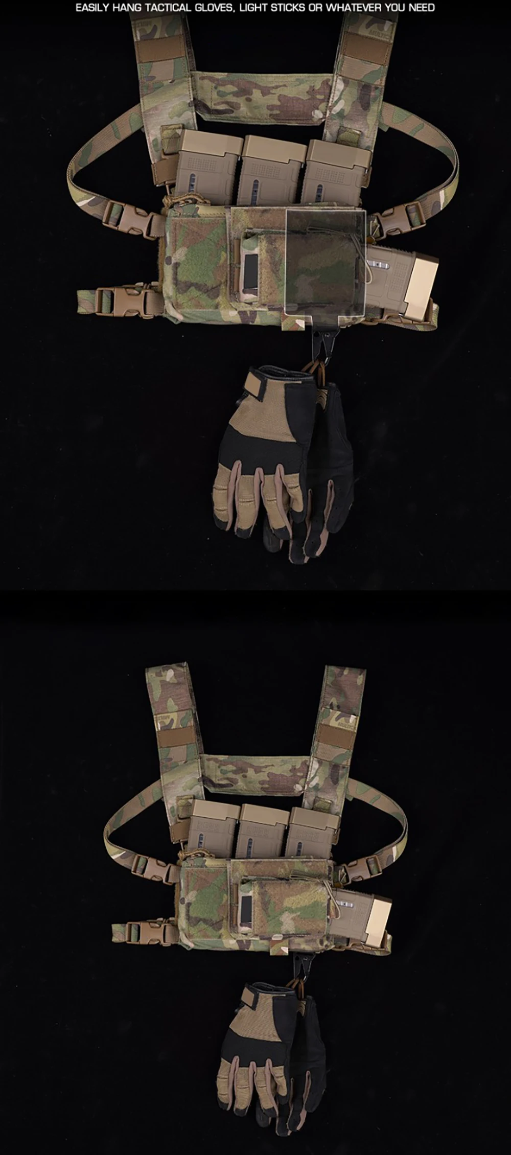 Un método sencillo para fijar artículos de forma segura donde quieras. Guarde fácilmente sus guantes cuando no estén en uso o úselos para alimentar paquetes de luces químicas en su próximo objetivo. El gancho está diseñado para usarse en la parte posterior de su micro lucha, o debajo de la solapa o cartel de un portaplacas.