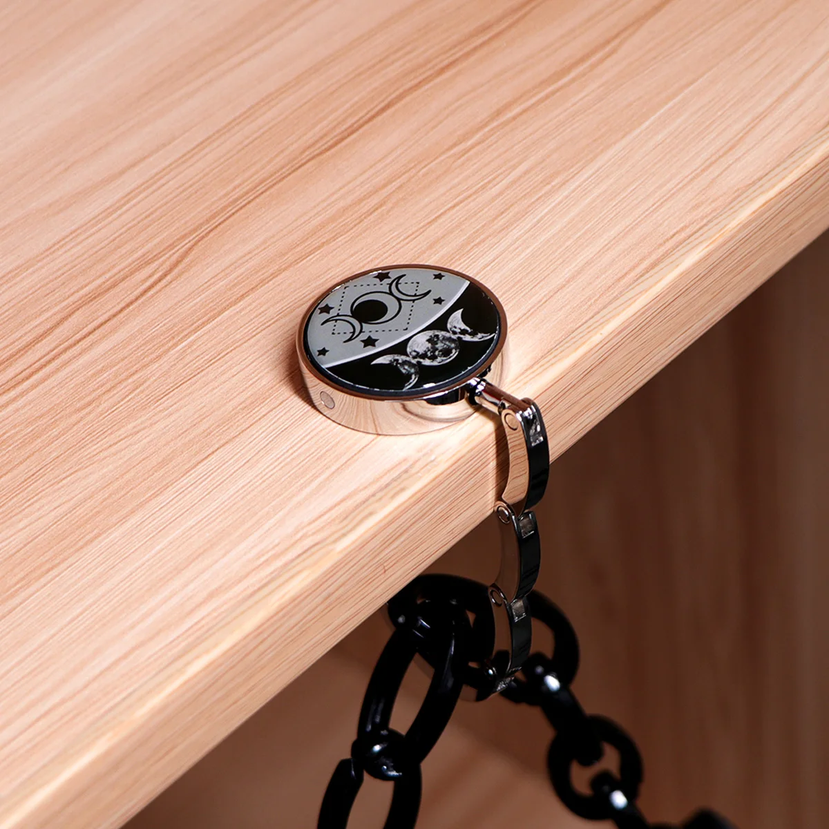 Ganchos para bolso de gato negro, soportes plegables para bolsas de mesa de Metal, perchas portátiles para monedero, accesorios de piezas, ganchos antideslizantes de Luna Vintage