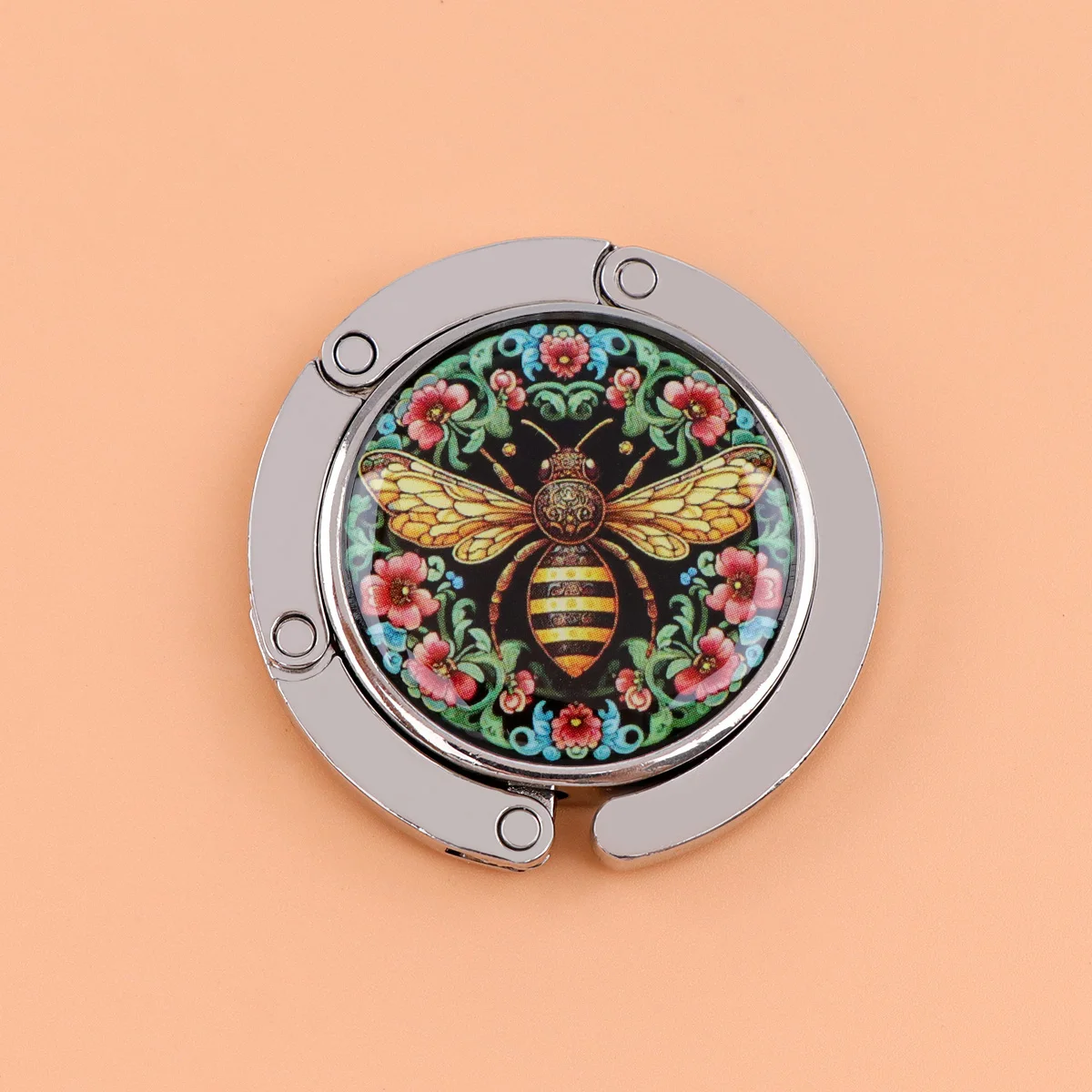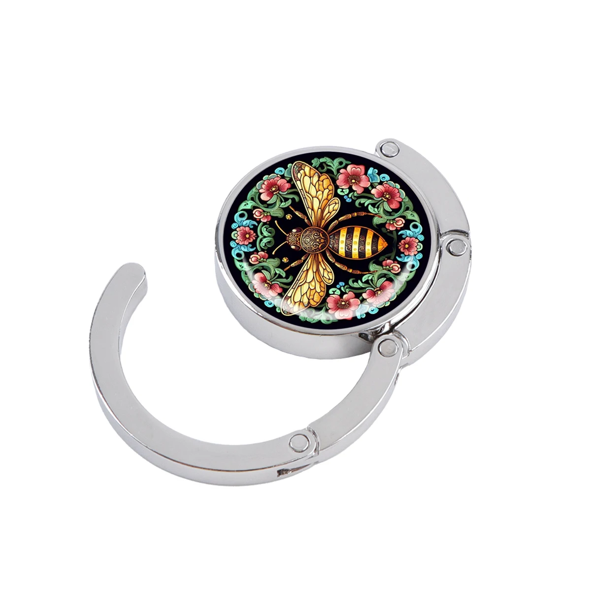 Ganchos para bolsos de abeja, soportes plegables de Metal para bolsas de mesa, perchas portátiles para monedero, accesorios de piezas únicas, ganchos antideslizantes de flores