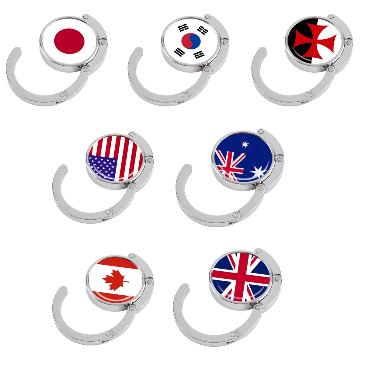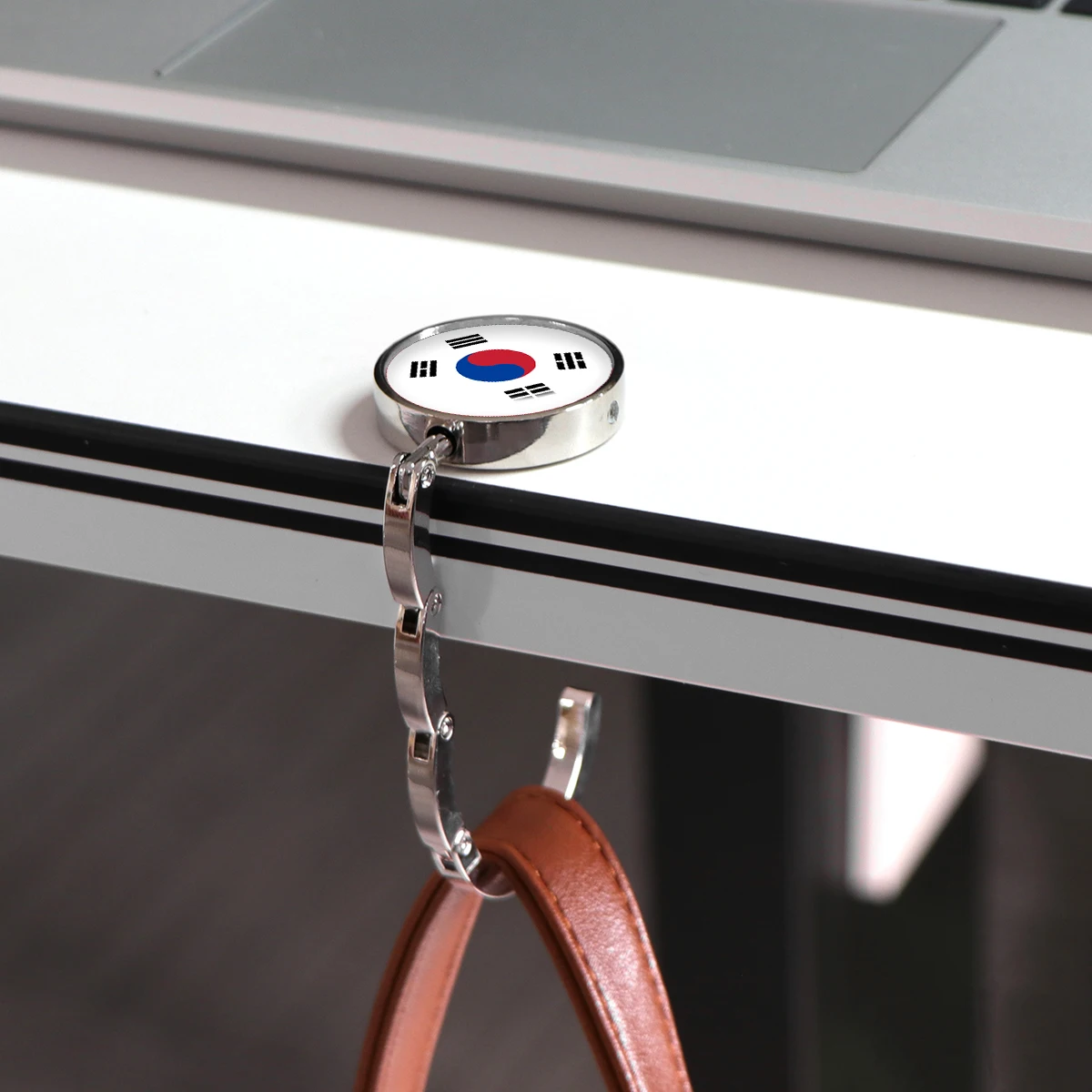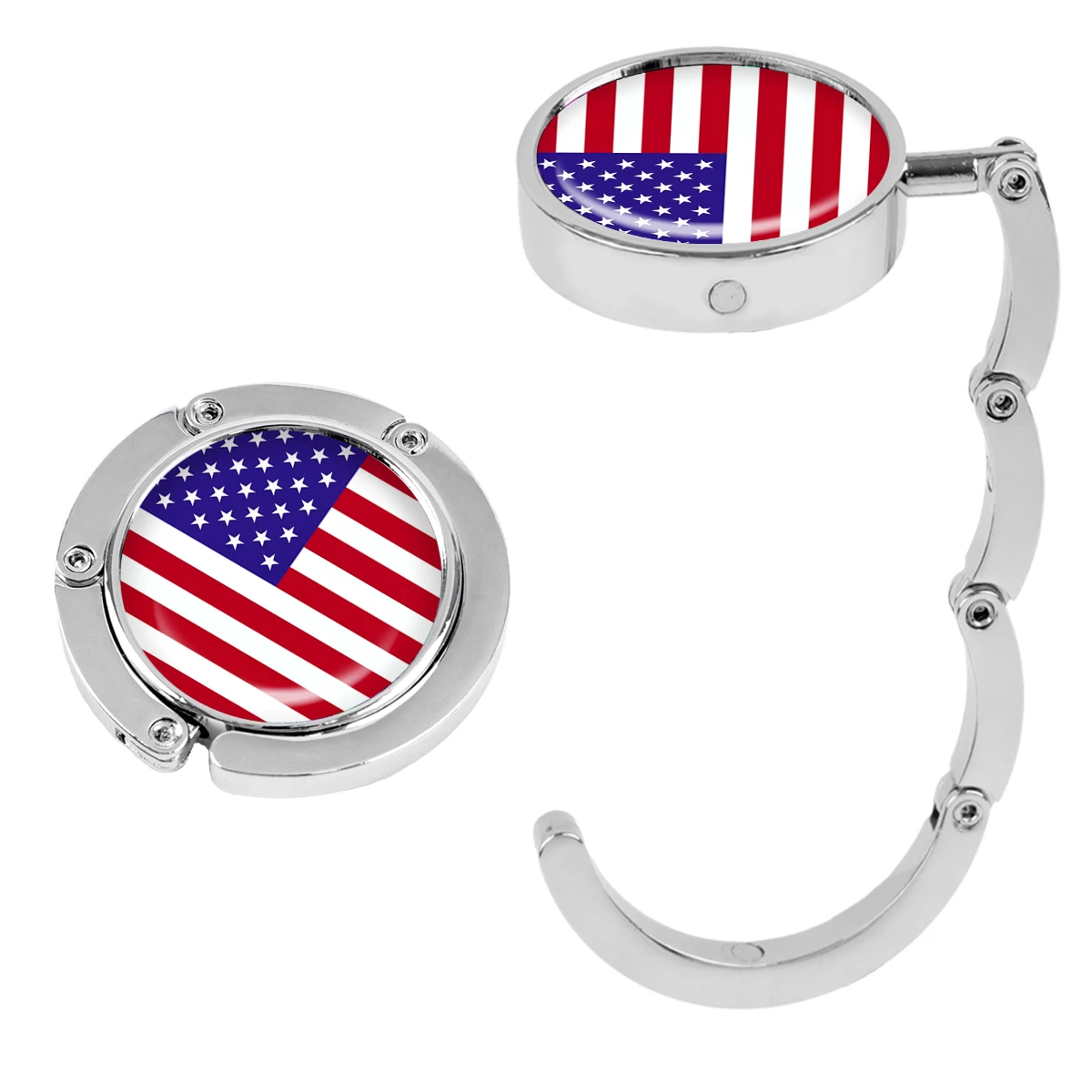 Ganchos para bolsos con bandera americana, soportes plegables de Metal para bolsas de mesa, perchas portátiles para monedero, accesorios de piezas, ganchos redondos antideslizantes