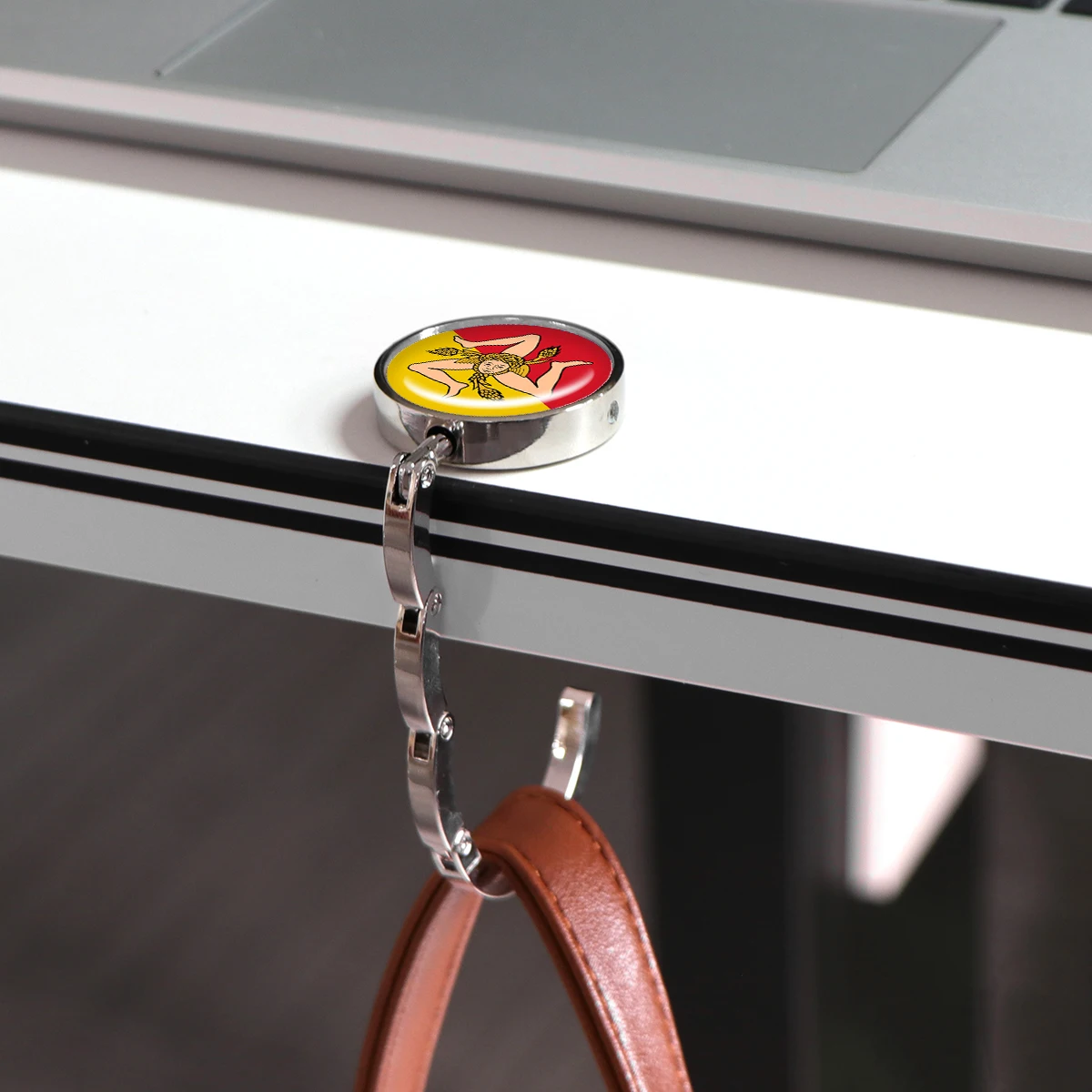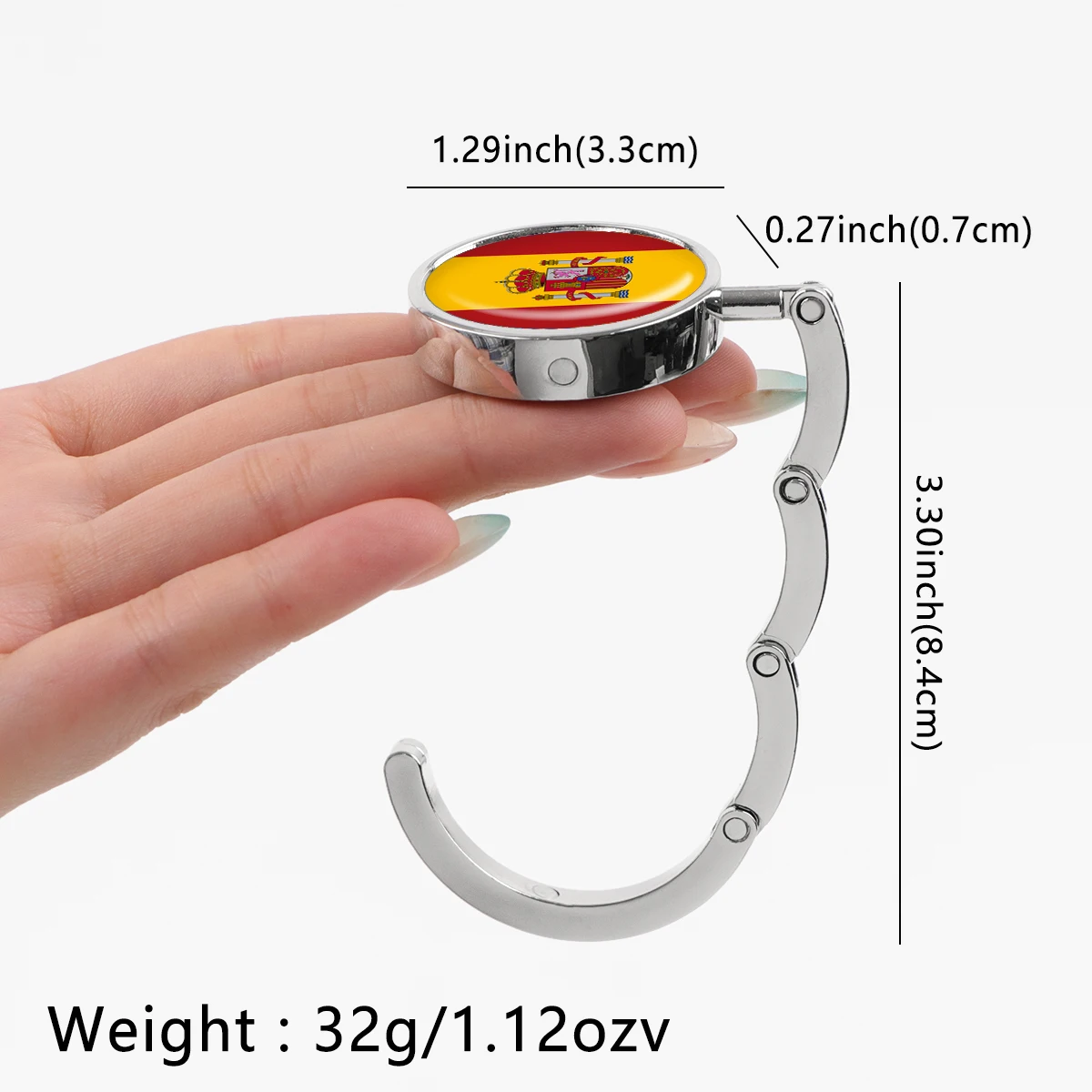 Ganchos para bolsos con bandera española, soportes plegables de Metal para bolsas de mesa, perchas portátiles para monedero, accesorios de piezas, ganchos redondos antideslizantes