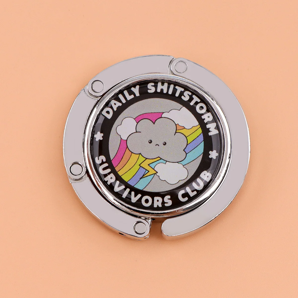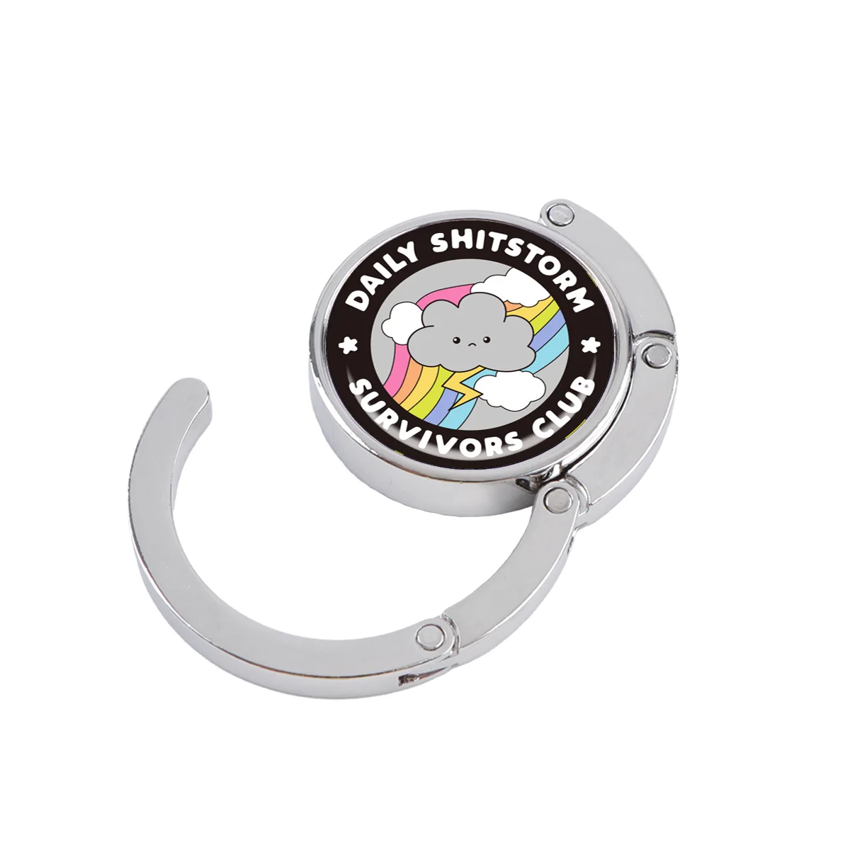 Ganchos para bolsos con citas de tormenta, soportes plegables de Metal para bolsas de mesa, perchas portátiles para monedero, accesorios de piezas únicas, ganchos antideslizantes
