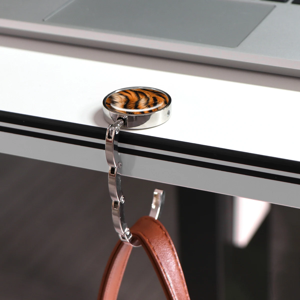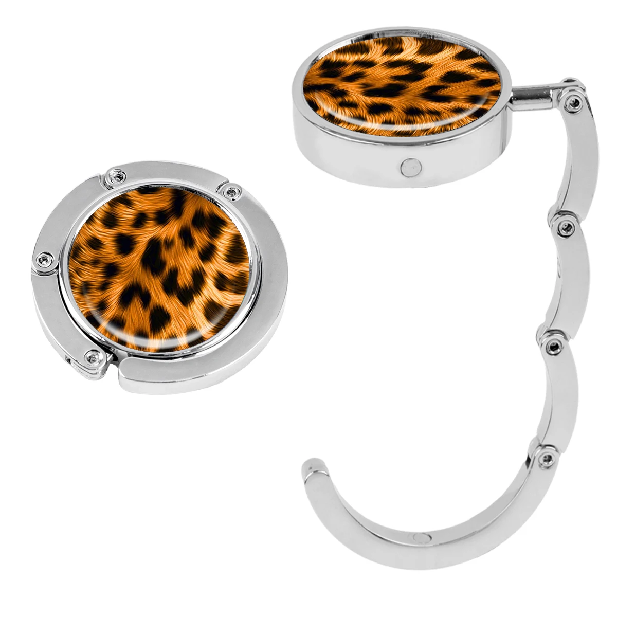 Ganchos para bolsos con estampado de leopardo, soportes plegables de Metal para bolsas de mesa, perchas portátiles para monedero, accesorios de piezas únicas, ganchos antideslizantes
