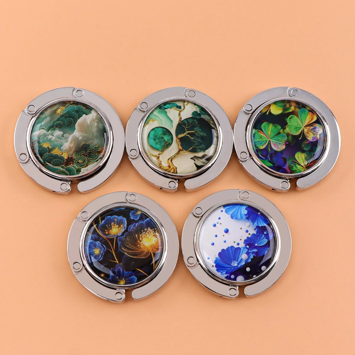 Ganchos para bolsos de flores, soportes plegables de Metal para bolsas de mesa, perchas portátiles para monedero, accesorios de piezas de moda, ganchos antideslizantes