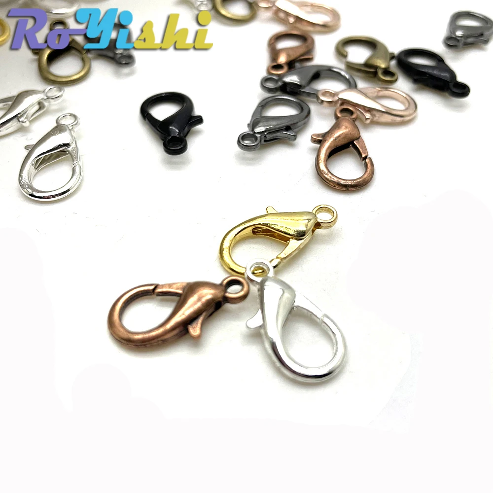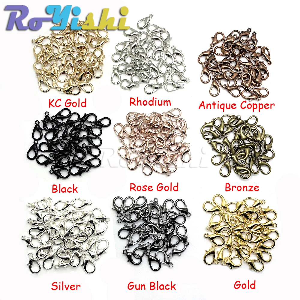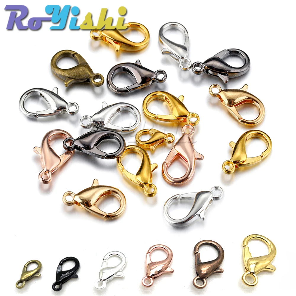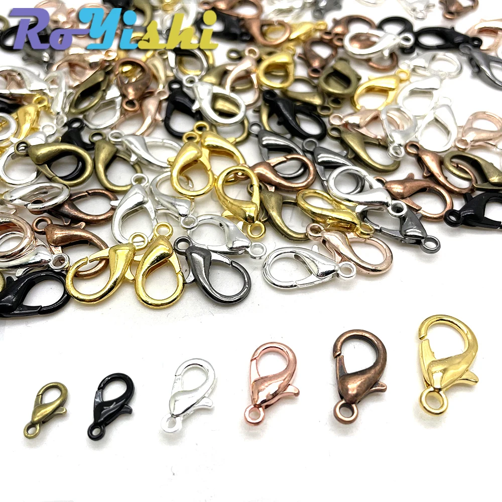 Ganchos de cierre de langosta de aleación para collar y pulsera, accesorios de joyería chapados en 9 colores, DIY, 10mm-21mm, 50 unids/lote por paquete
