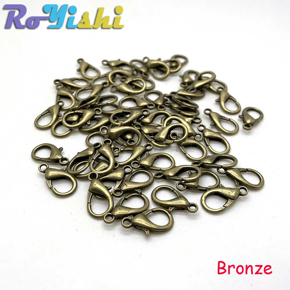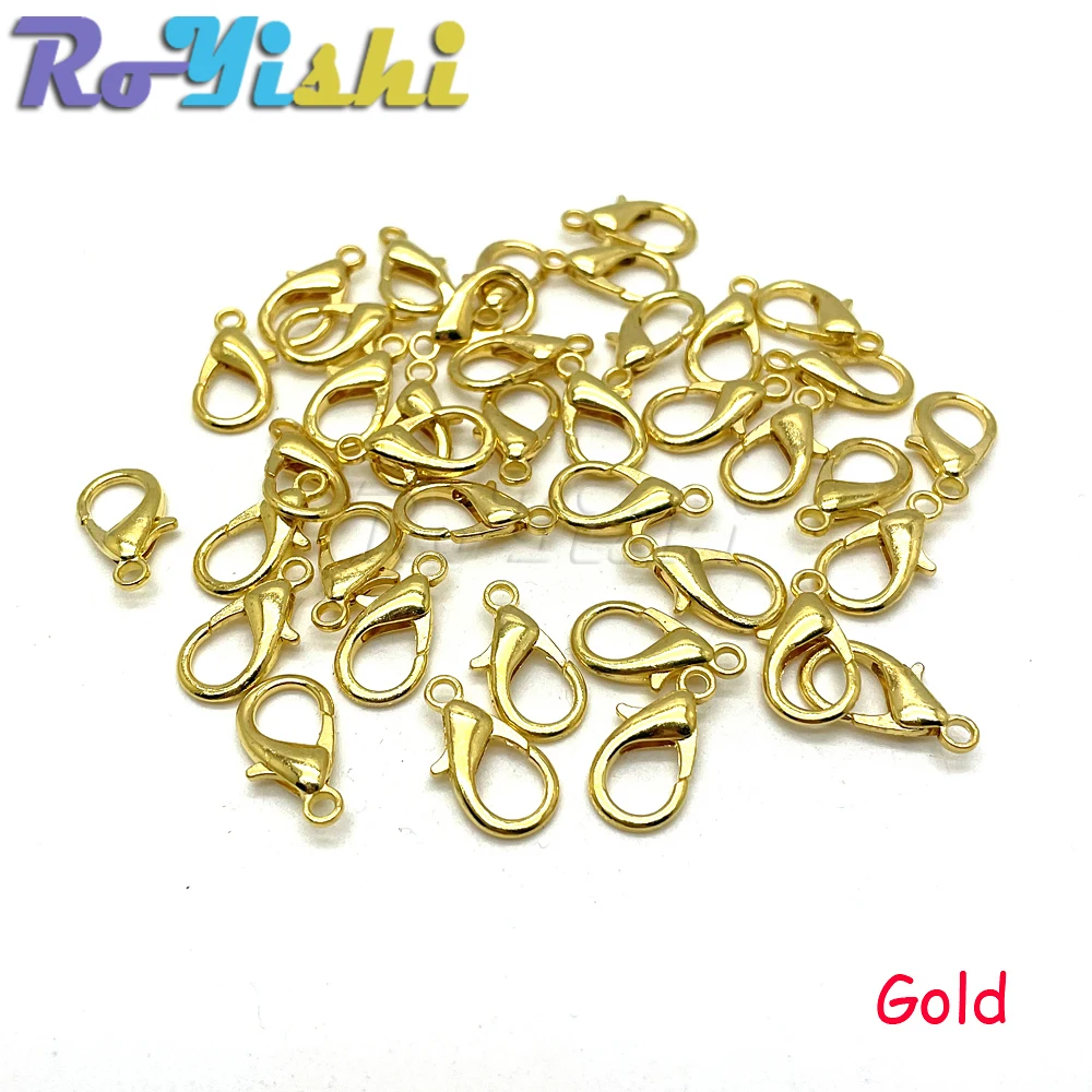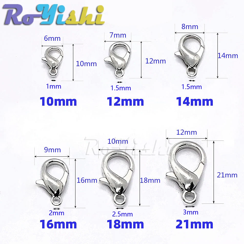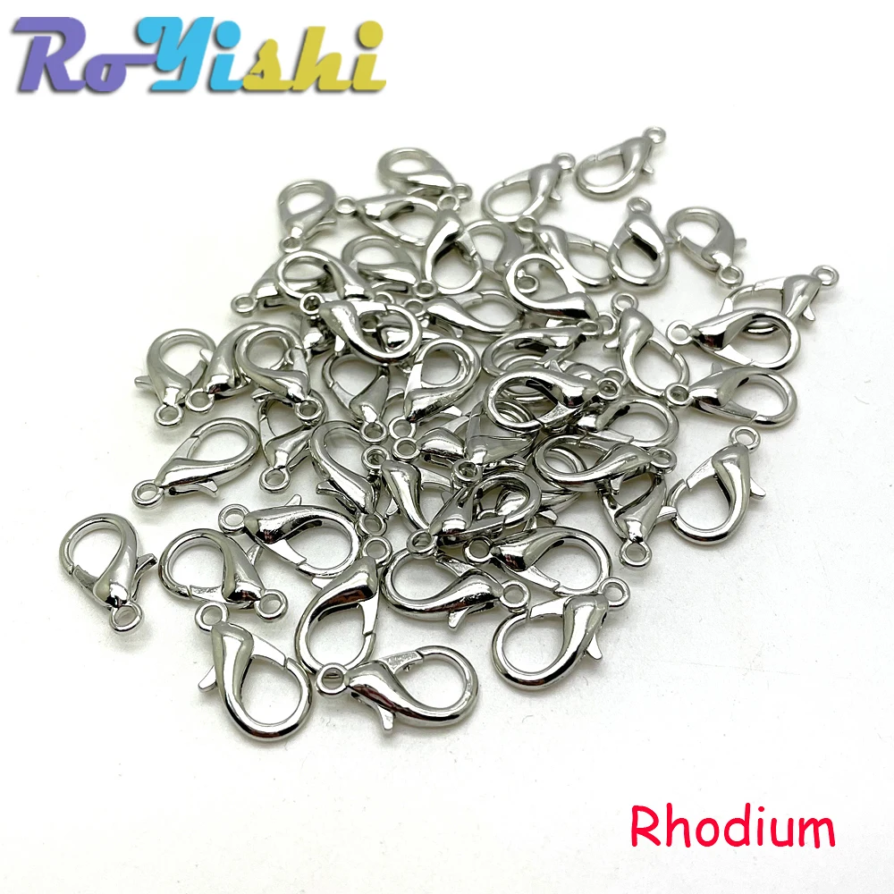 Ganchos de cierre de langosta de aleación para collar y pulsera, accesorios de joyería chapados en 9 colores, DIY, 10mm-21mm, 50 unids/lote por paquete