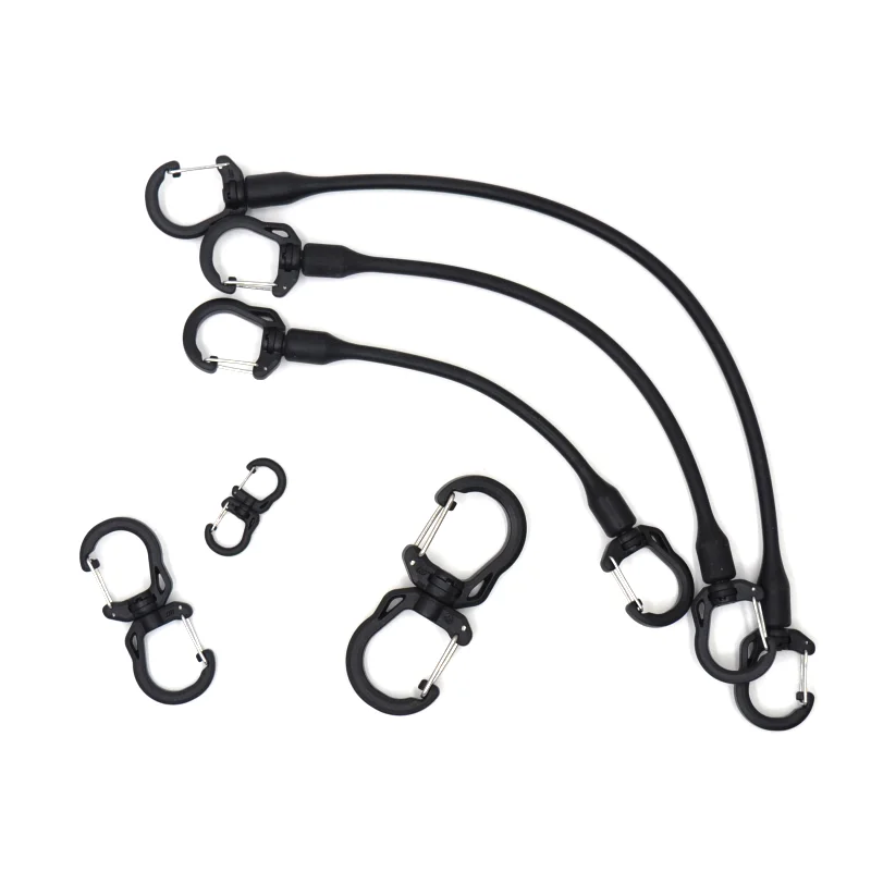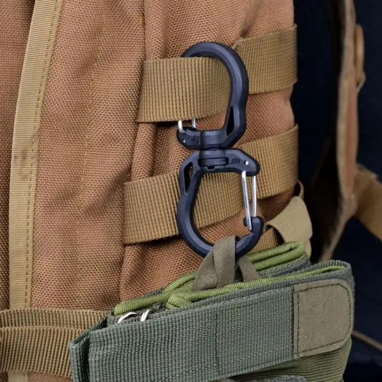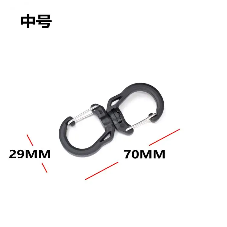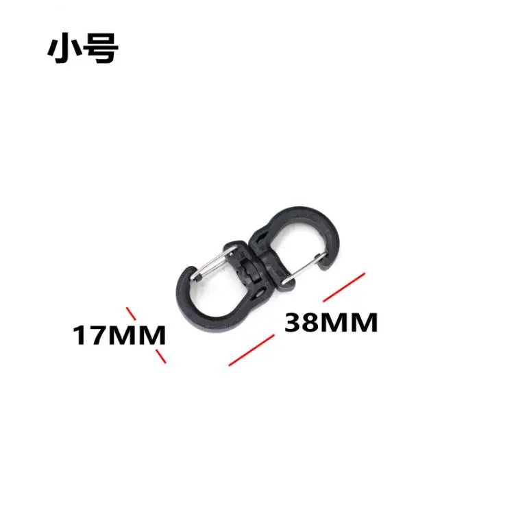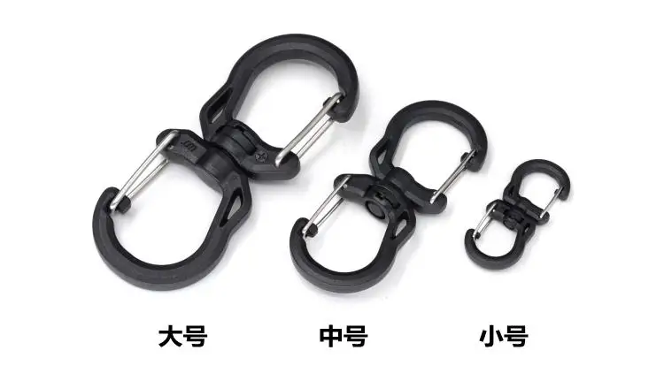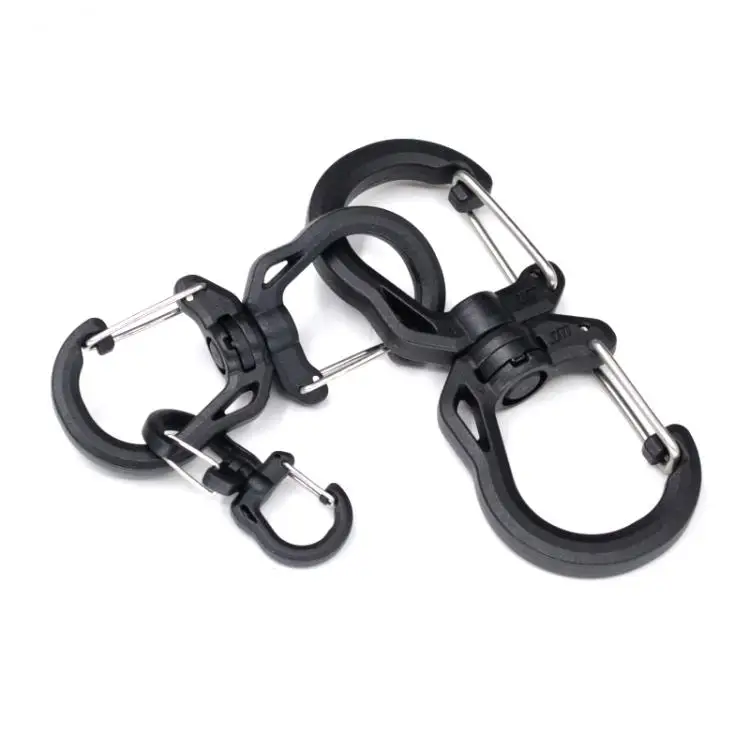 Ganchos giratorios multifuncionales de doble punta, ganchos elásticos de plástico, llavero bidireccional grande, mediano, pequeño y negro