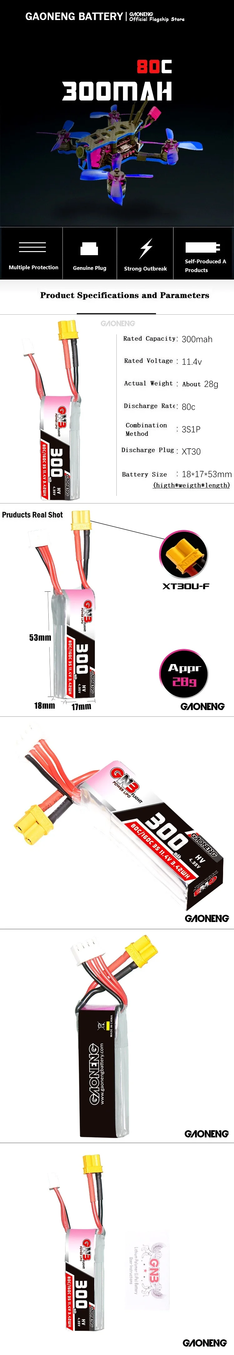 GAOGENG-batería Lipo 3S GNB 11,4 V 80C 300mah para BETAFPV Beta75X 3S Beta65X 2S Whoop Drones, piezas 3S XT30, enchufe 2/4/6/10 piezas