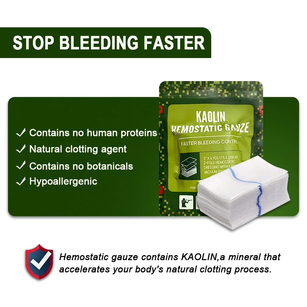 • Hemostático de kaolín :El hemostático de kaolín ayuda a detener la pérdida de sangre, lo que es crucial en caso de heridas graves.