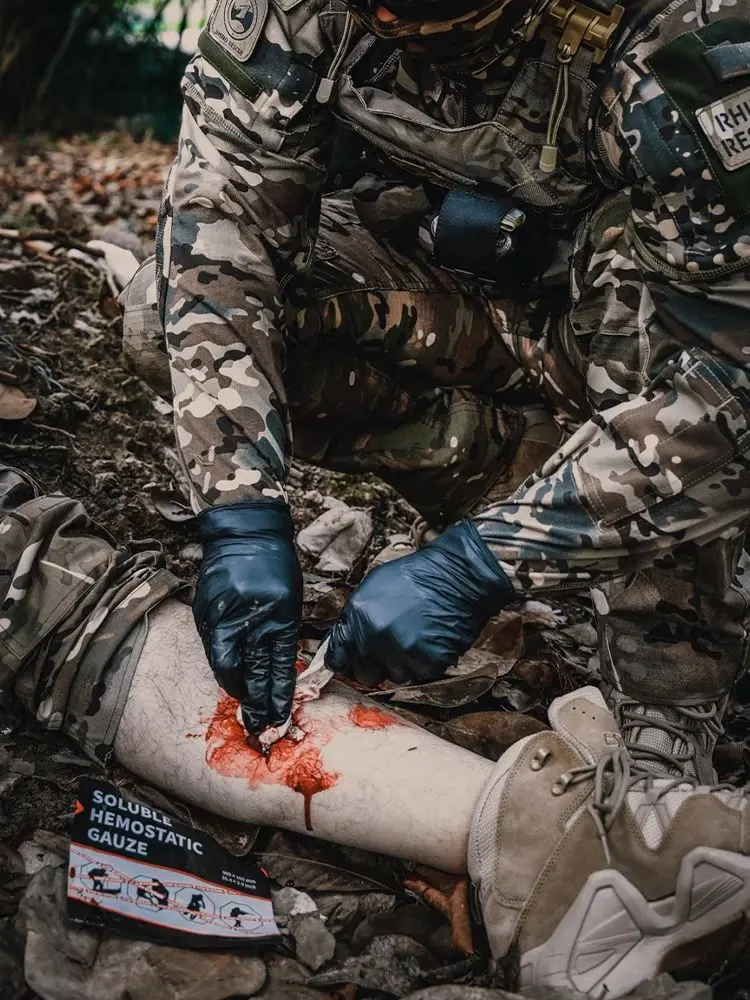 Detener el sangrado---La gasa de combate puede detener rápidamente el sangrado y reducir significativamente la cantidad de sangrado.