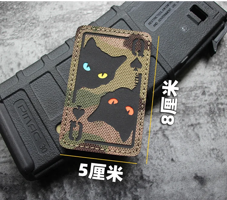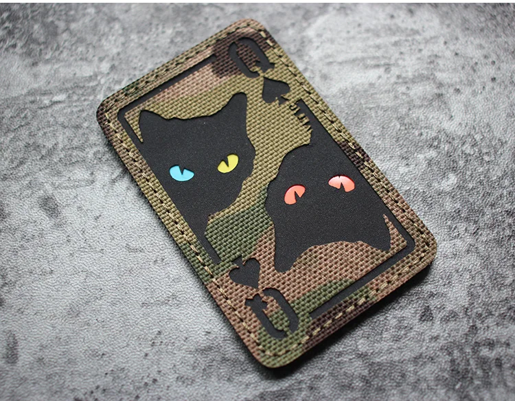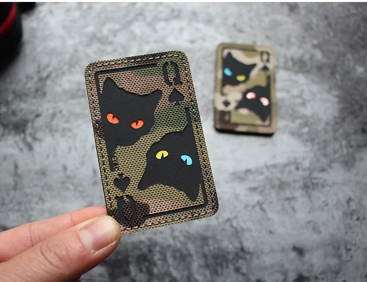 Gatito póker espadas Q parche luminoso Nylon lindo gato negro insignia táctica reflectante para accesorios de bolsa de ropa