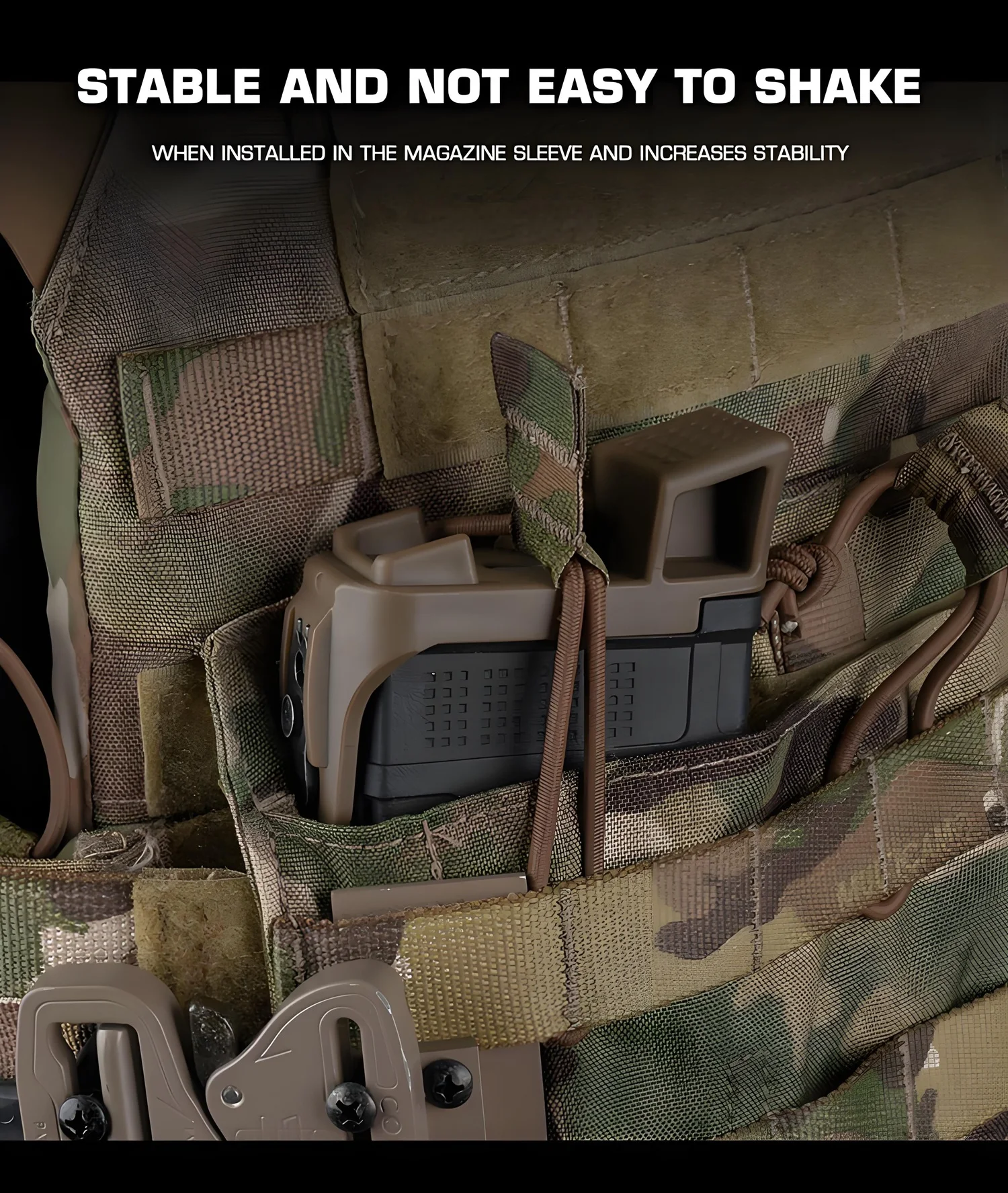 🛡️ Integración segura de la funda: cuando se instala en una funda para cargador compatible, la base GBB PMAG se bloquea de forma segura, evitando sacudidas o movimientos no deseados durante maniobras intensas.Esto garantiza que su equipo permanezca exactamente donde lo necesita.