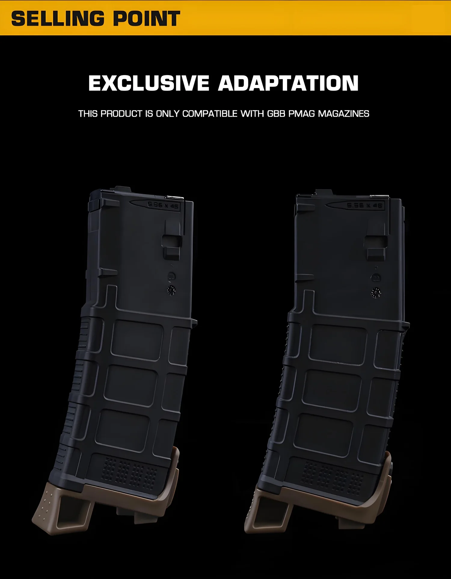 Mejore su preparación táctica con GBB PMAG Base, el adaptador definitivo que mejora el rendimiento diseñado exclusivamente para revistas GBB PMAG.Esto no es sólo una placa base; Es un sistema táctico multifuncional diseñado para proporcionar una estabilidad superior, recargas más rápidas y una comodidad inigualable en el campo.Ingrese a un nuevo mundo táctico donde cada detalle cuenta.