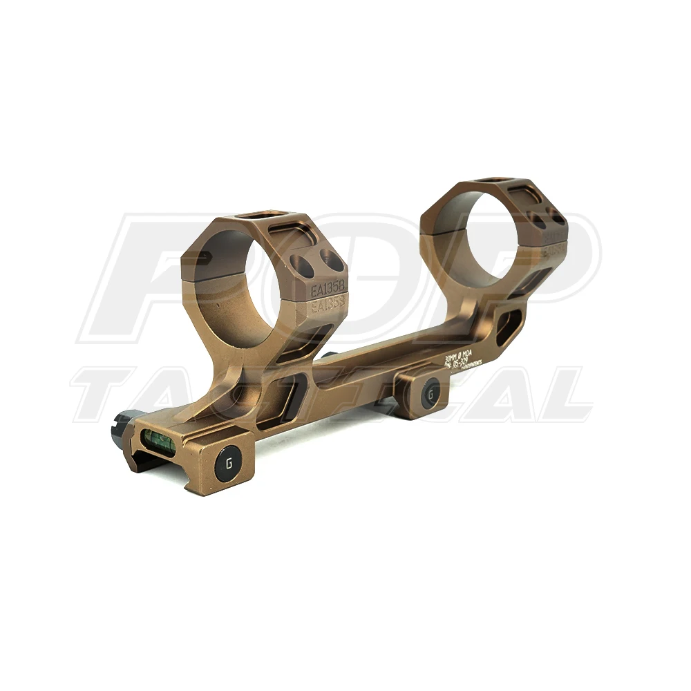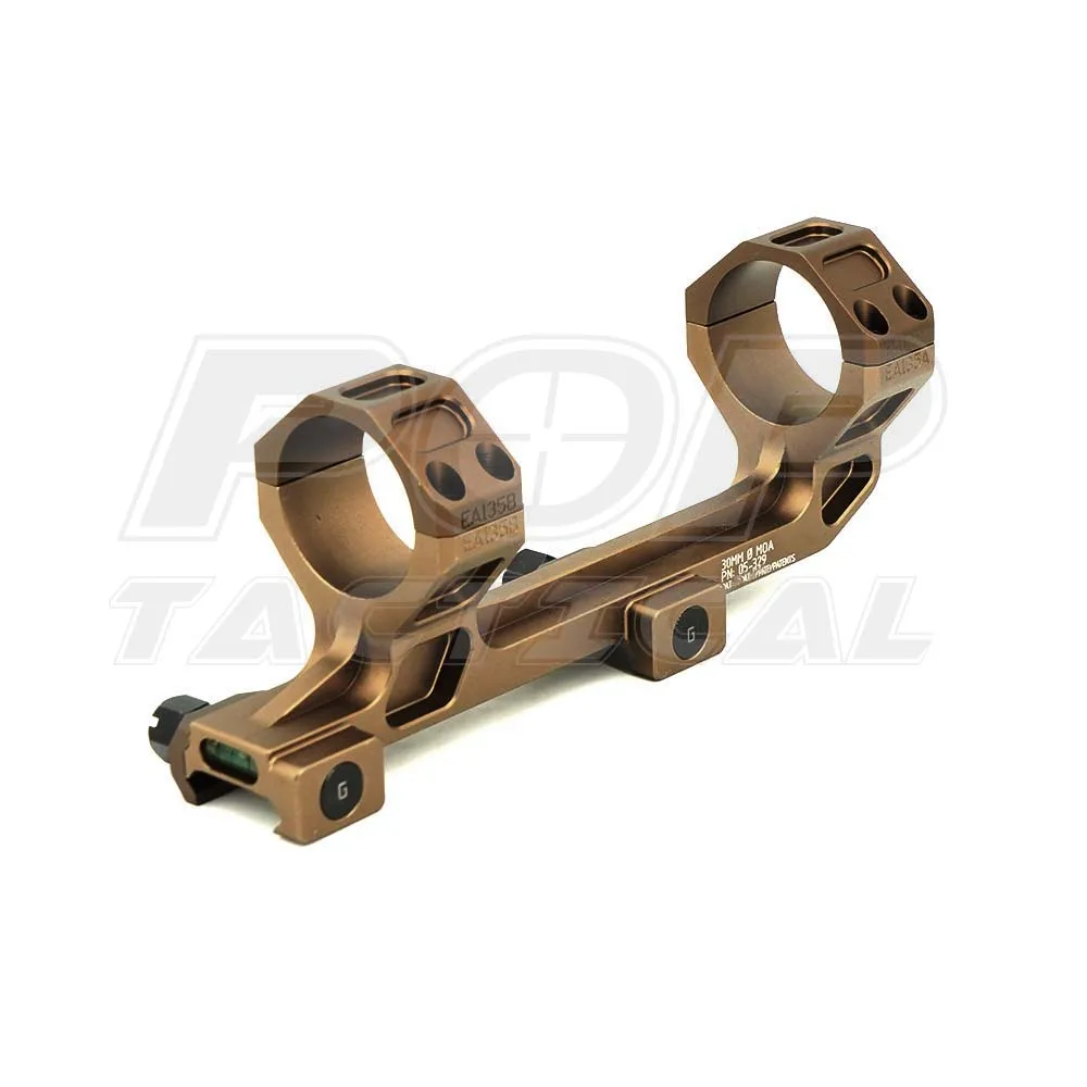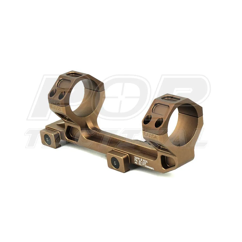 Otra ventaja del mecanizado a partir de una sola pieza de aluminio es que GE es capaz de crear un soporte con ubicaciones de tapas que se adaptarán a una amplia variedad de visores. Todos los soportes están disponibles en opciones de inclinación cero y 20 MOA, y en capa dura anodizada tipo 3 negra o en capa dura anodizada DDC (Desert Dirt Color) tipo 3.