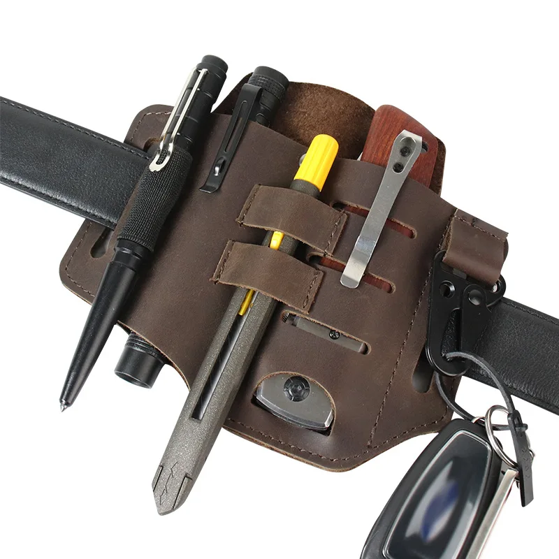 Gebwolf-hebilla de boca de águila de cuero de vaca EDC, herramienta táctica, funda, cinturón para acampar al aire libre, juego de cuchillo colgante de cintura