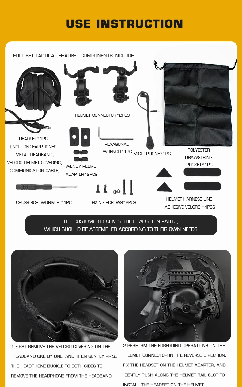 Componente del producto: auriculares * 1 ud., micrófono * 1 ud., Conector de casco * 2 ", pieza de conversión de riel * 2", bolsillo con cordón * 1 ud.