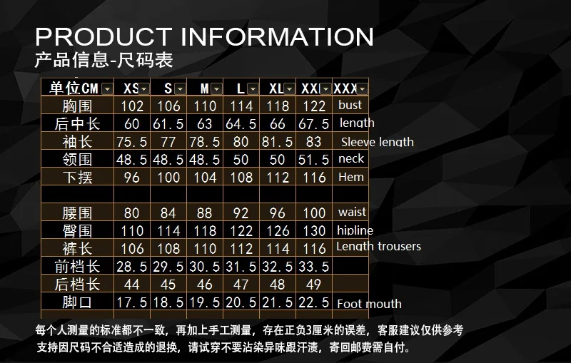 M: 175-180 CM 70-80 KG