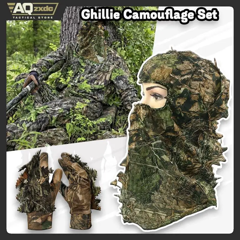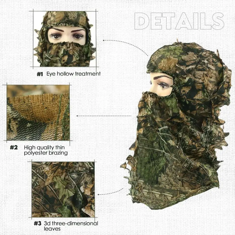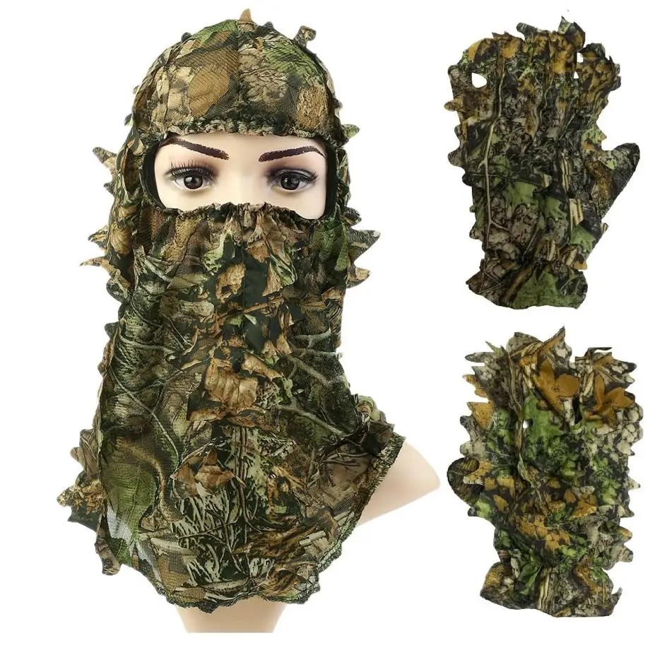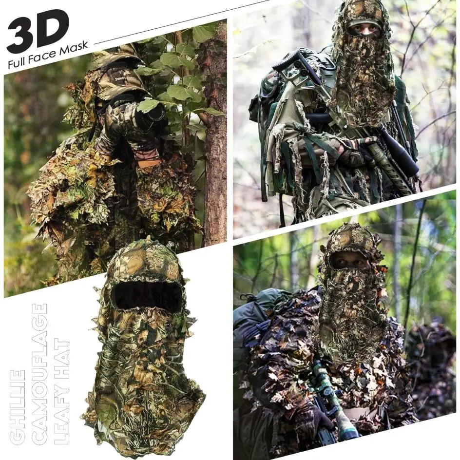 Ghillie camuflaje 3D mascarilla facial completa con hojas guantes de caza de camuflaje, accesorios de caza de camuflaje para caza camuflaje táctico