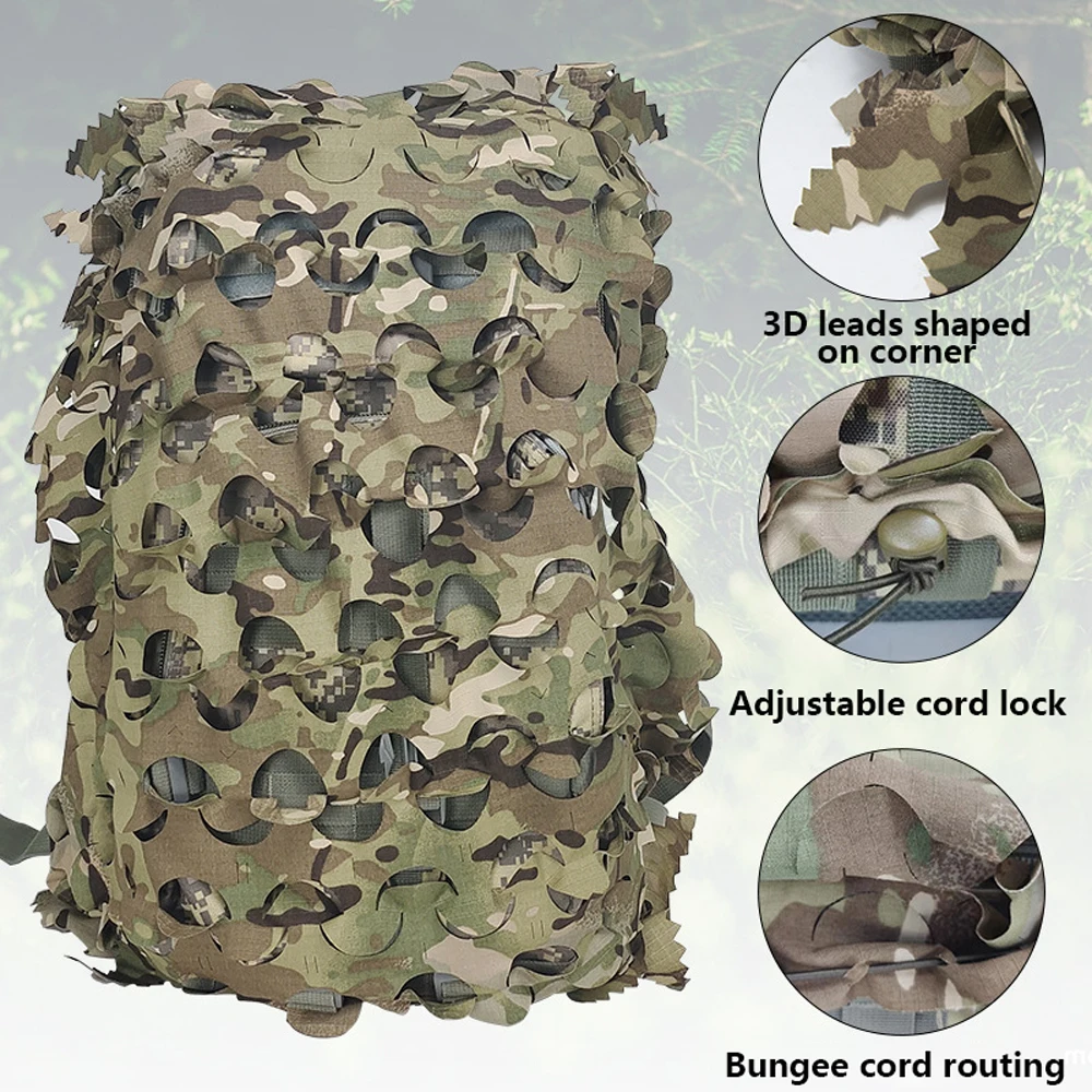 Ghillie mochila cubierta Scrim 3D Camo Netting táctico 60L asalto paquete cubierta camuflaje mochila cubierta caza bolsa Accesorios