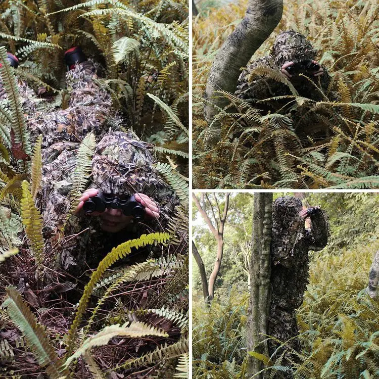Ghillie-traje de camuflaje biónico para exteriores, traje troquelado de hojas