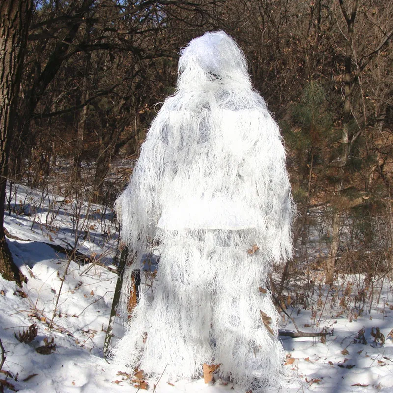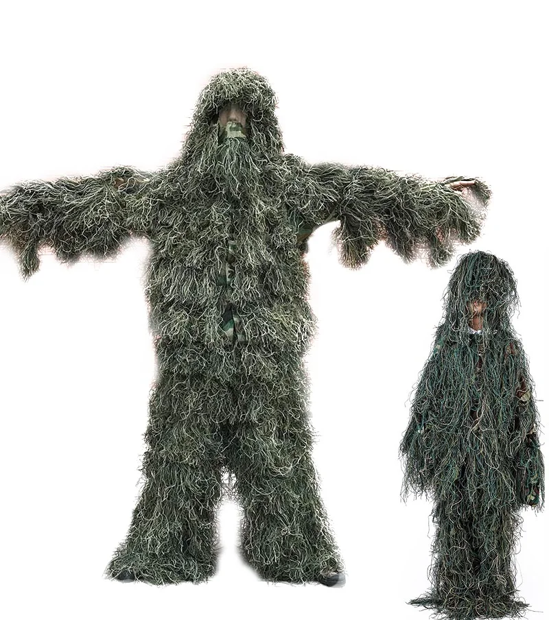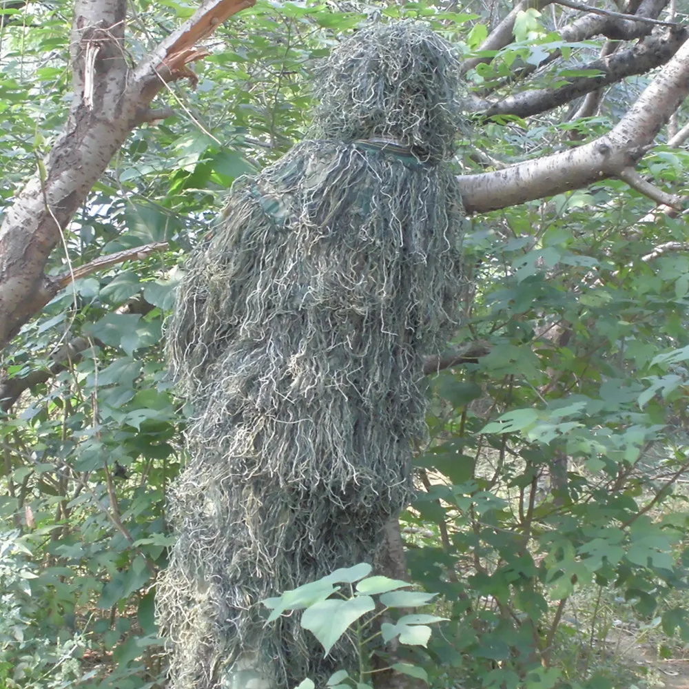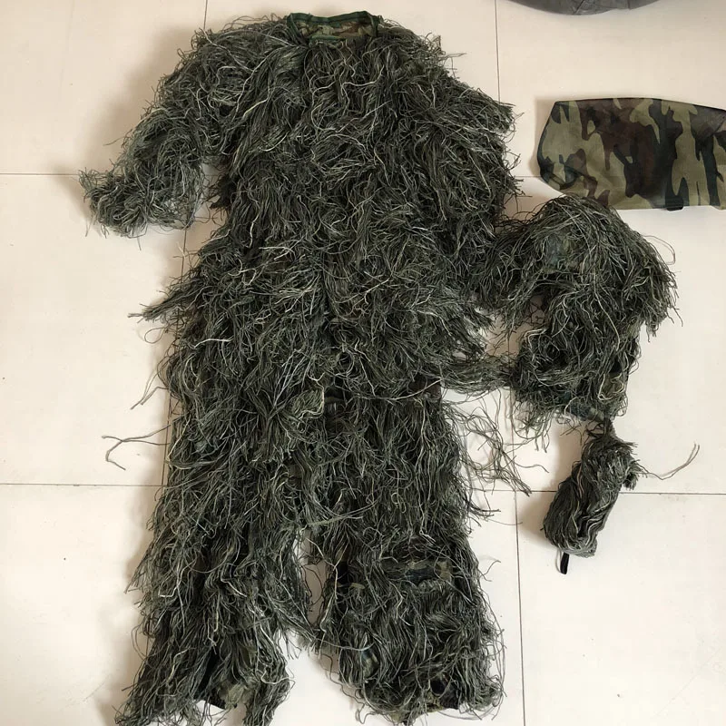 7. Traje Ghillie de camuflaje con materiales de cáñamo de alta calidad, hecho de tela, fácil de limpiar, no arrojará el repollo, transpirable, brillante y de color puro estable, no se desvanece ni se deforma.