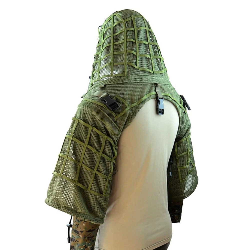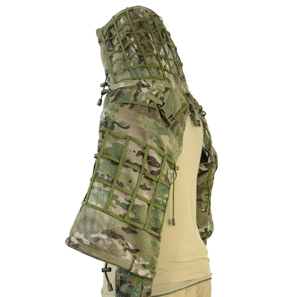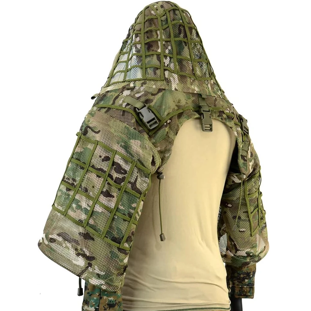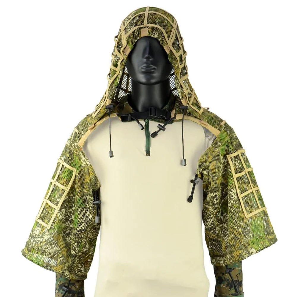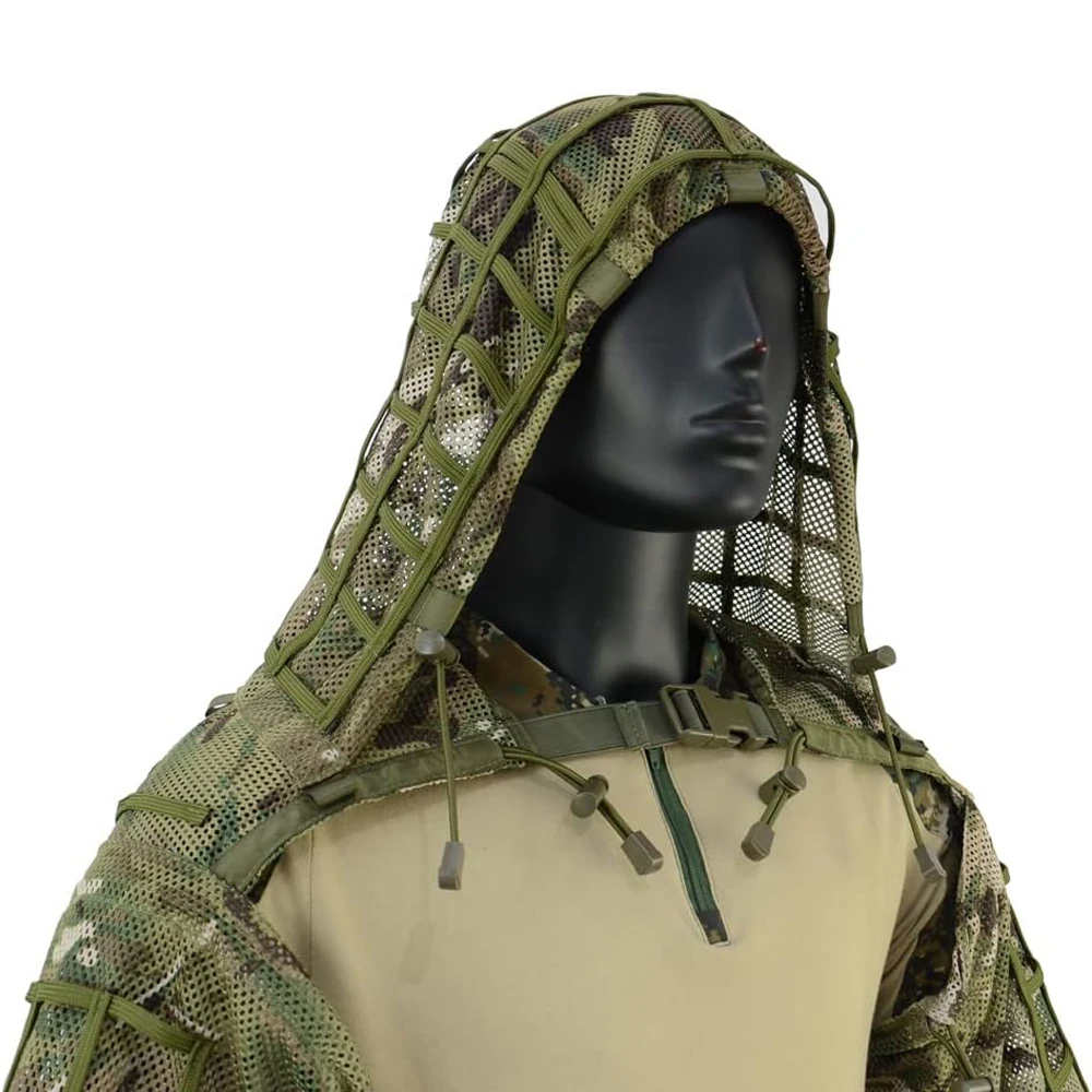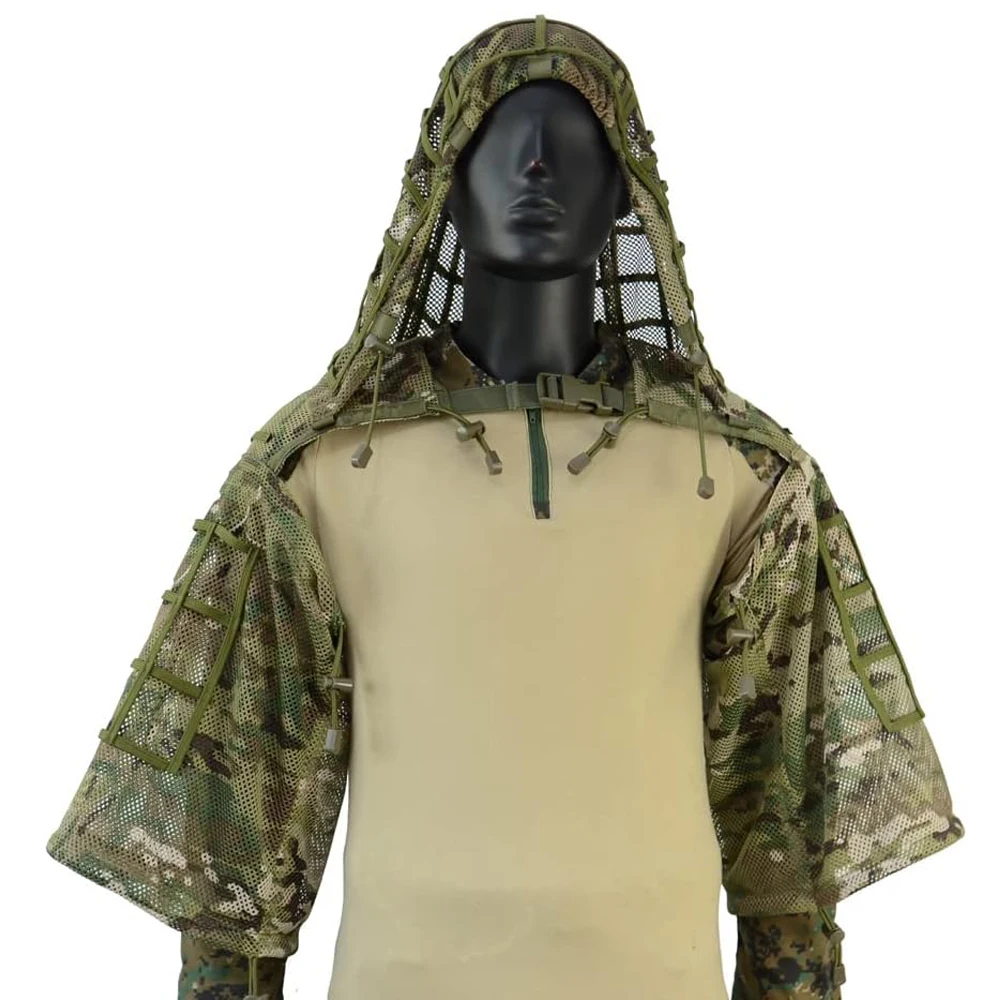 Ghillie Suit Foundation Tactical Sniper Coat Viper Hoods Ropa de camuflaje para Airsoft Paintball Ropa de caza, tela de malla