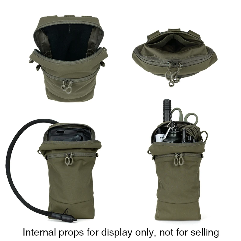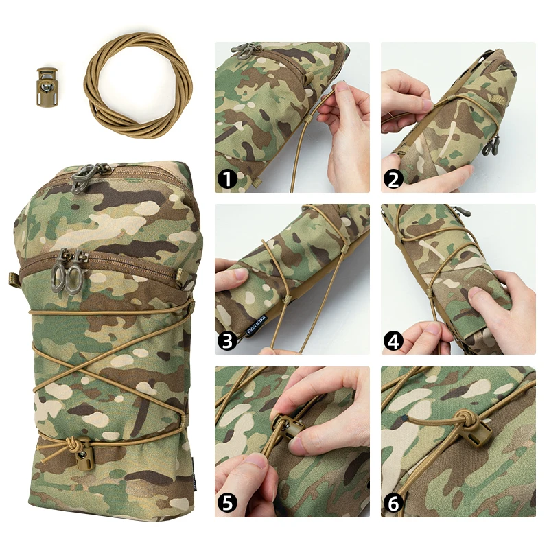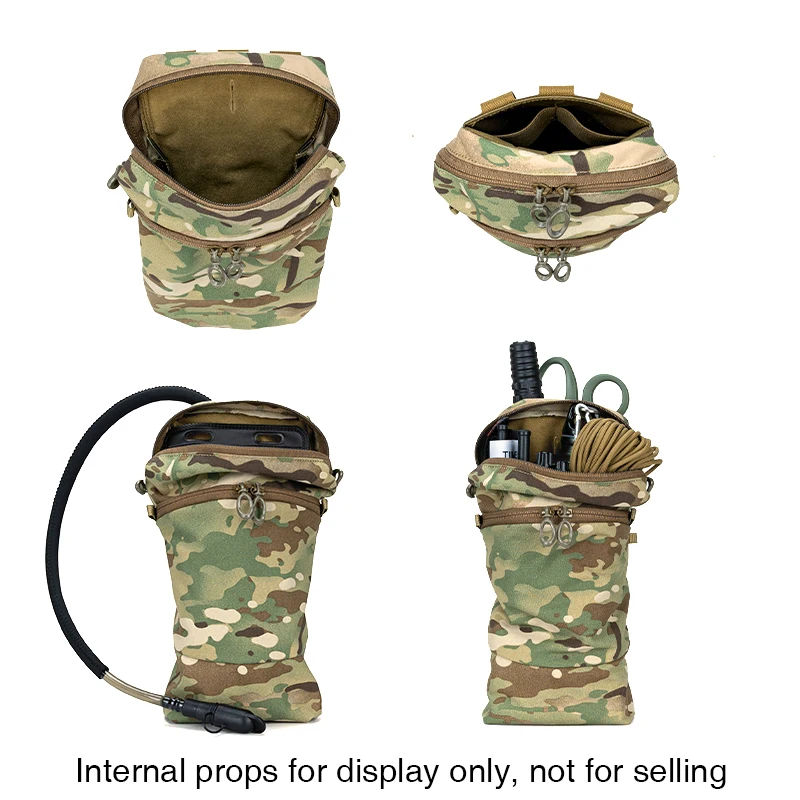 Marca: Acción fantasma Material: nailon 500D de alta calidad. Tamaño: 12X5 pulgadas Peso: 0,3 KG Paquete: Bolsa * 1 Ideal para guardar cargas de bofetada, vejigas de agua de 1,5 litros o una chaqueta. Bolsillo trasero con retención elástica para cargas de tapa. El interior del bolsillo principal presenta un forro de bucle. Incluye paso para enrutamiento de cables. Viene con cable amortiguador y cierre de cable para mayor retención. Dimensiones: 12"x5" Capacidad: Bolsa de agua de 2,5 L