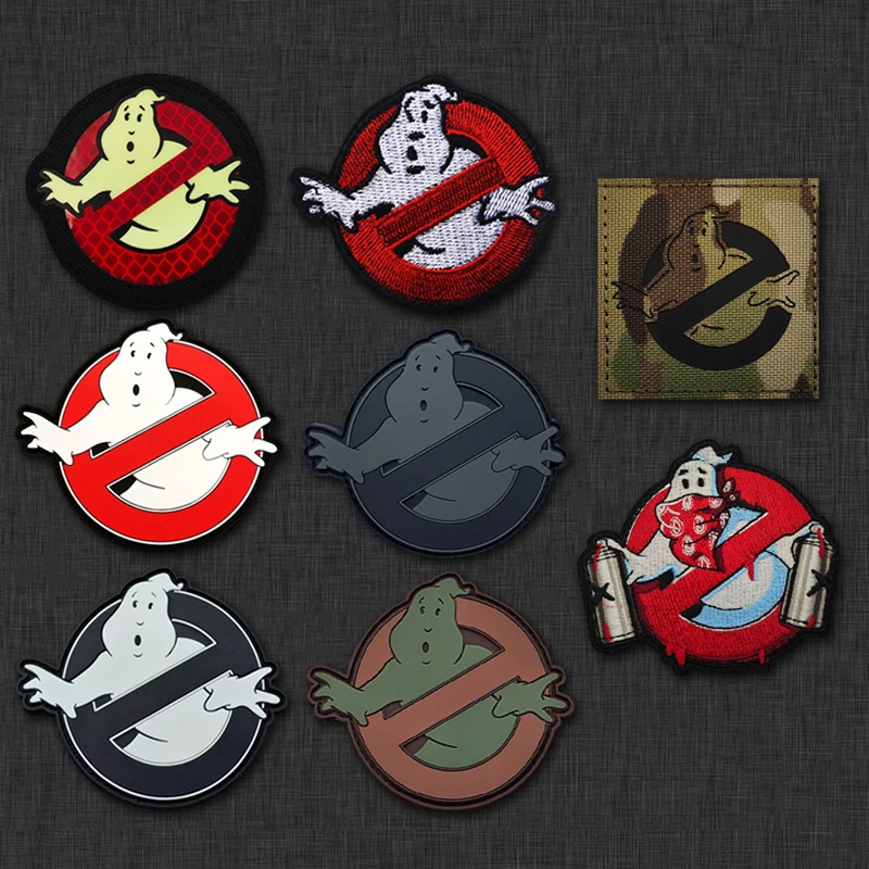 Ghostbuster-bordado táctico rojo para atrapar el equipo fantasma, bordado que brilla en la oscuridad, parche de tela con patrón divertido, bolso para coser, sombrero