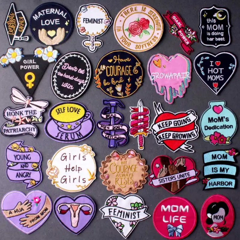 Parche de bordado Power para chicas, parches para planchar en la ropa, parches a rayas, insignias para manualidades, ropa, parches termoadhesivos para mochila