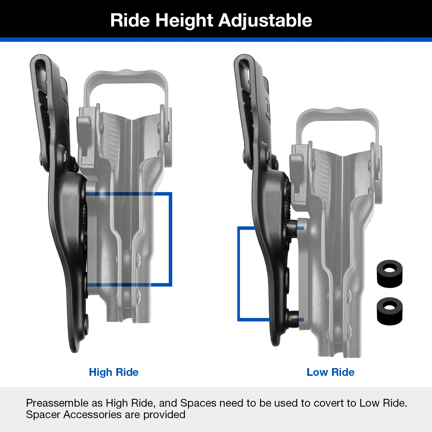 Altura de conducción ajustable, está preensamblado como High Ride y se puede convertir como funda Low Ride con accesorios incluidos dentro del paquete.