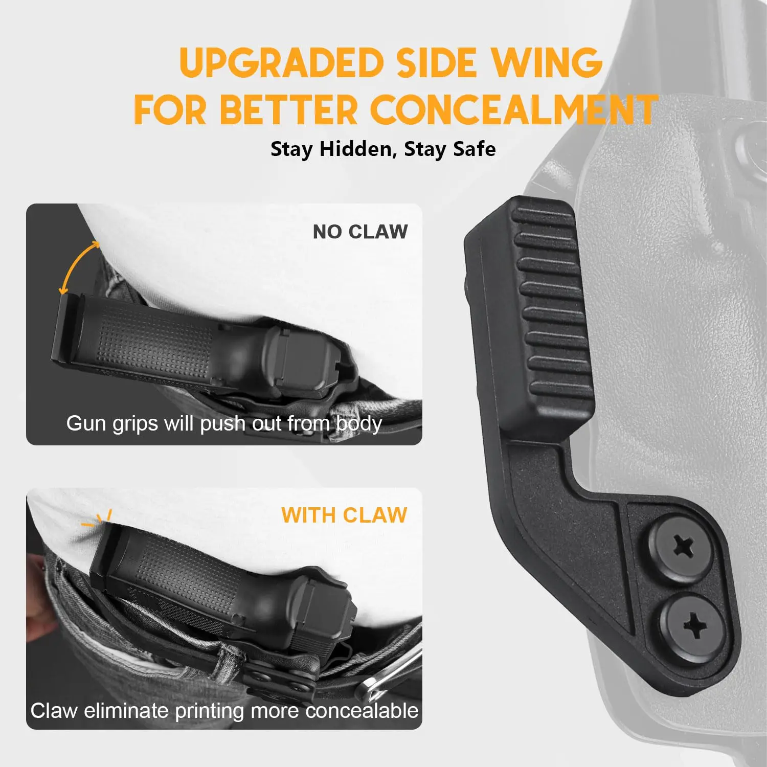Garra de ocultación para un mejor transporte oculto: la garra integrada ayuda a reducir la impresión presionando el agarre más cerca de su cuerpo, lo que la hace ideal para un transporte diario discreto.