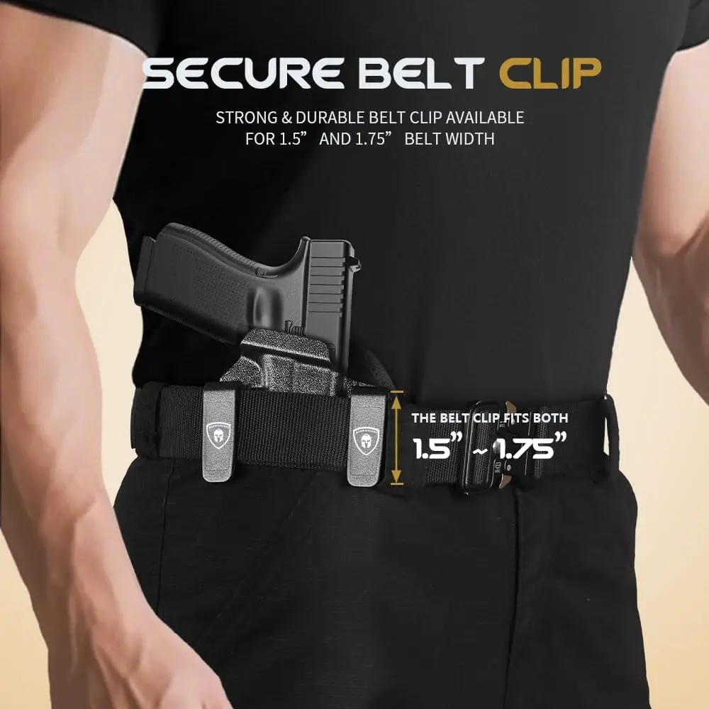 【CLIP DE CINTURÓN SEGURO】 Clip de cinturón fuerte y duradero disponible para un ancho de cinturón de 1,5" y 1,75”, dos patas de clip independientes para maximizar el contacto con su cinturón.