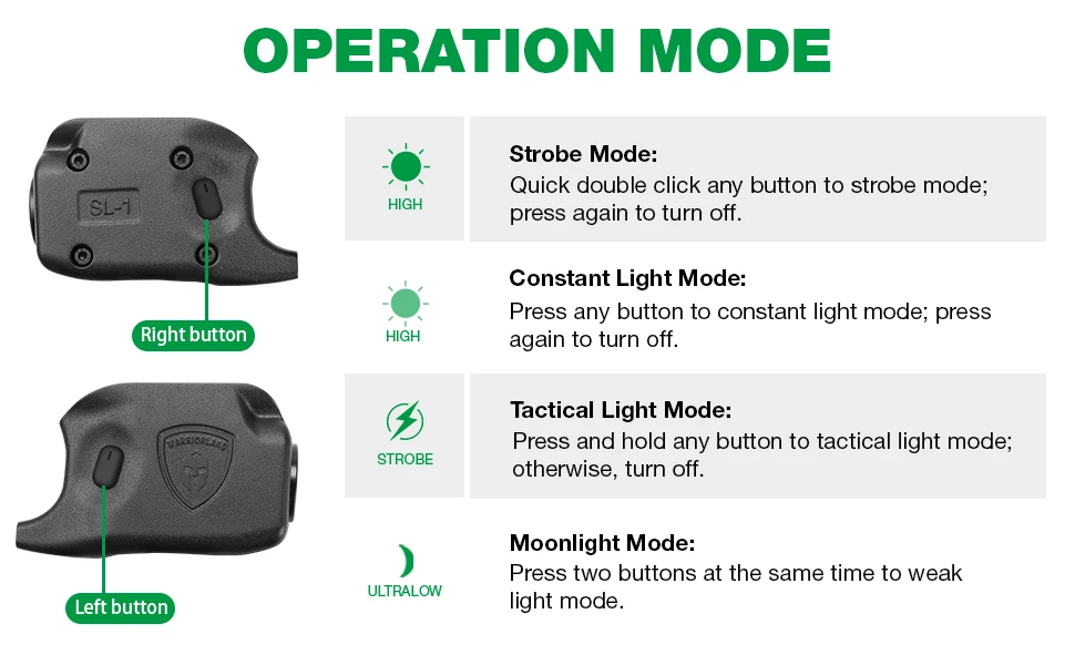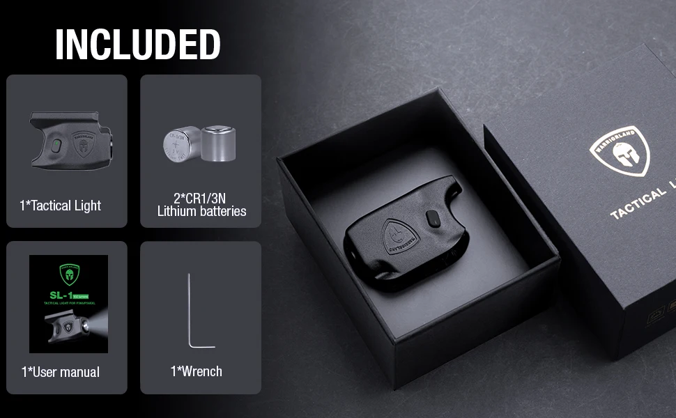 No proporcionar bateríaGARANTÍATAMAÑO MINI: tamaño mini, y la apariencia de esta luz táctica está hecha a medida para adaptarse al contorno deG43X