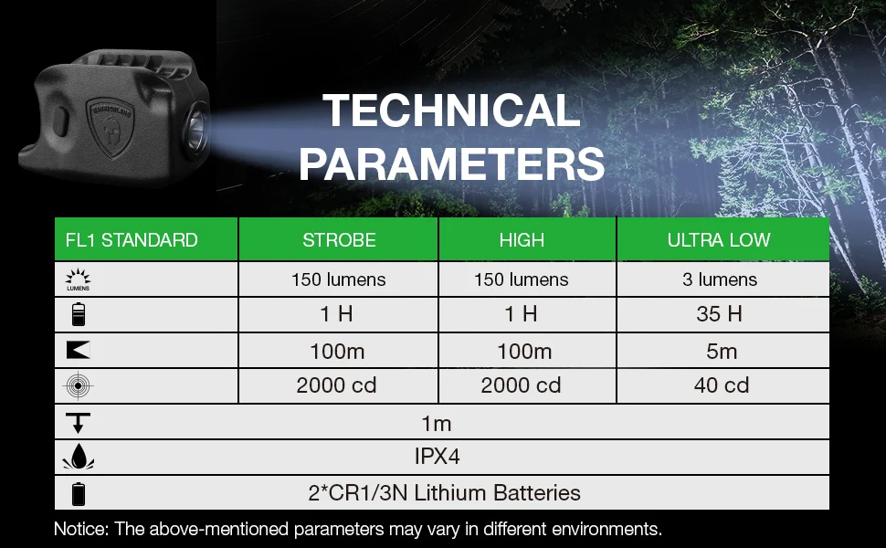SALIDA - Luz táctica SL-1 paraG43Xpotencia máxima de 150 lúmenes - distancia del haz de 100 metros