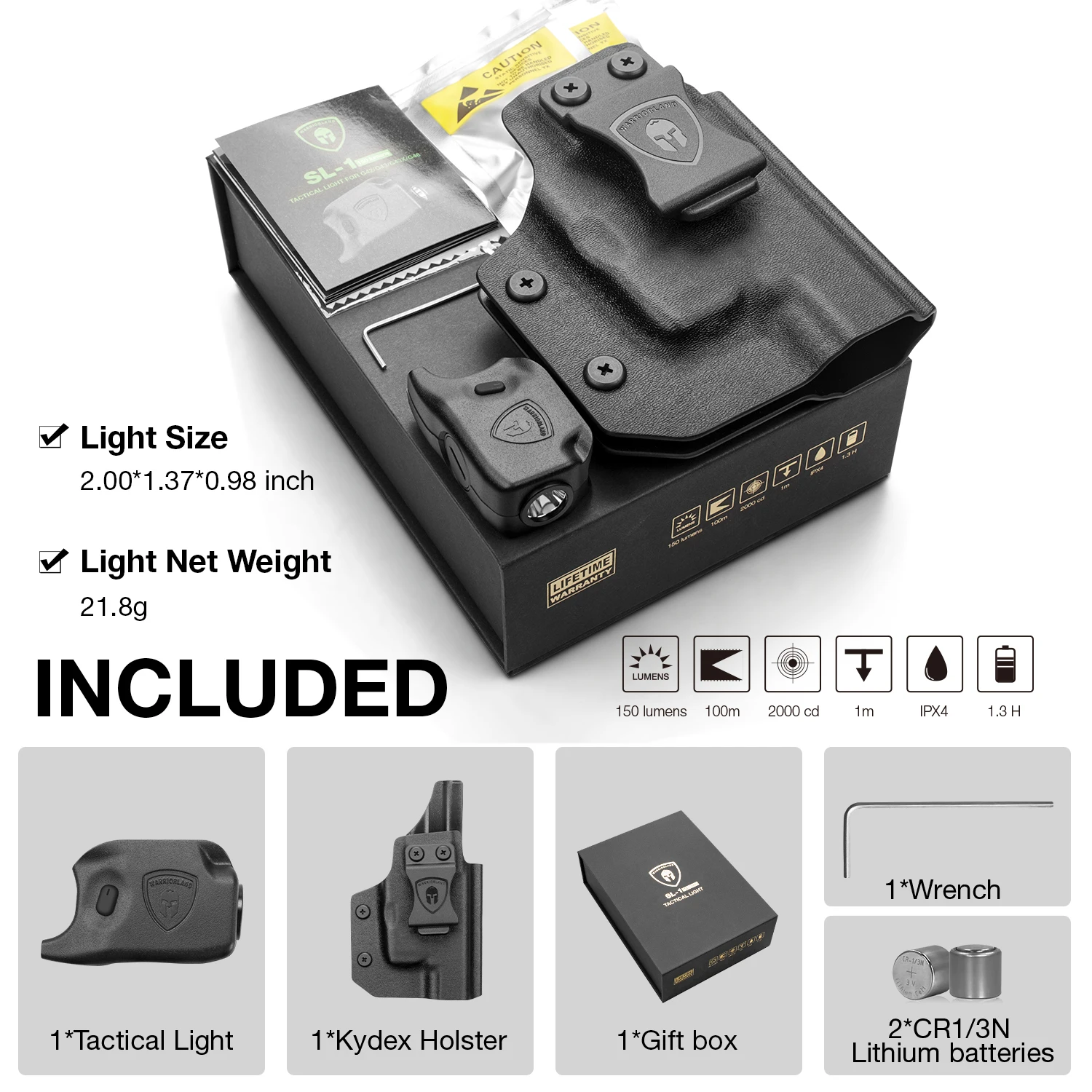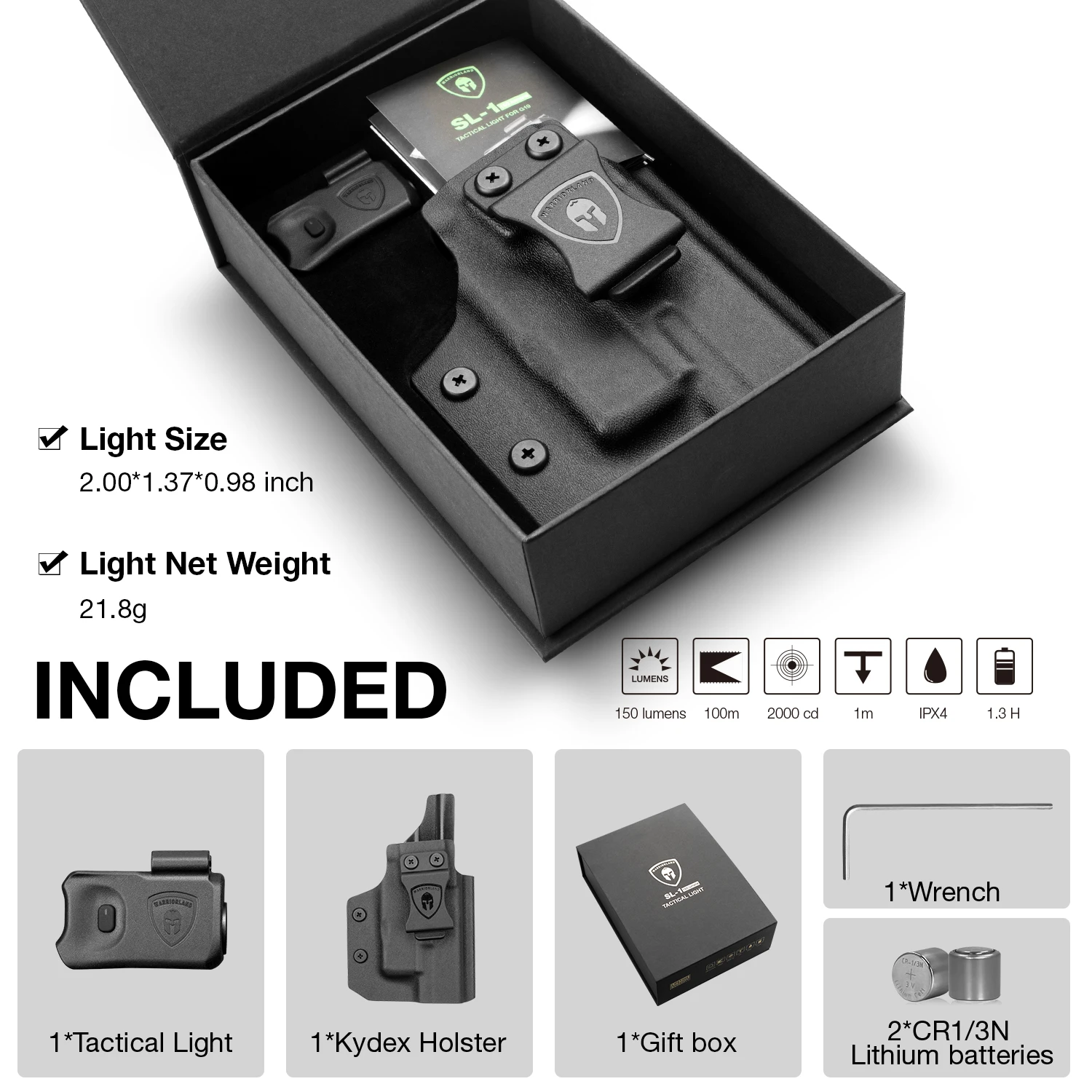 SALIDA - Luz táctica SL-1 de salida máxima de 150 lúmenes - distancia del haz de 100 metros;