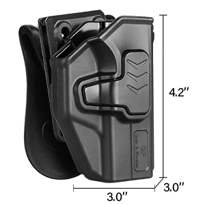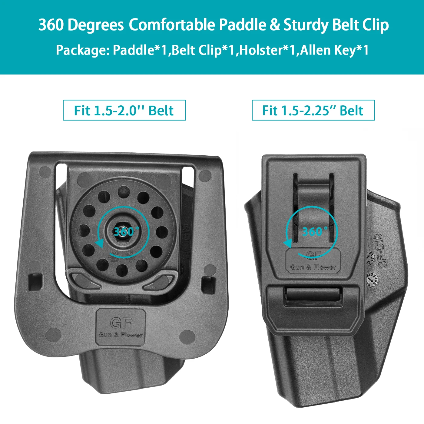【Paleta ajustable de 360 grados】La funda es ajustable de 360 grados con la llave Allen, lo que le permite inclinar la funda perfectamente para el apêndice, en la cadera, detrás de la cadera o el dibujo cruzado.Todos los bordes están pulidos y lisos y la suave paleta de silicona para que te sientas cómodo cuando vuelvas a tener la piel.