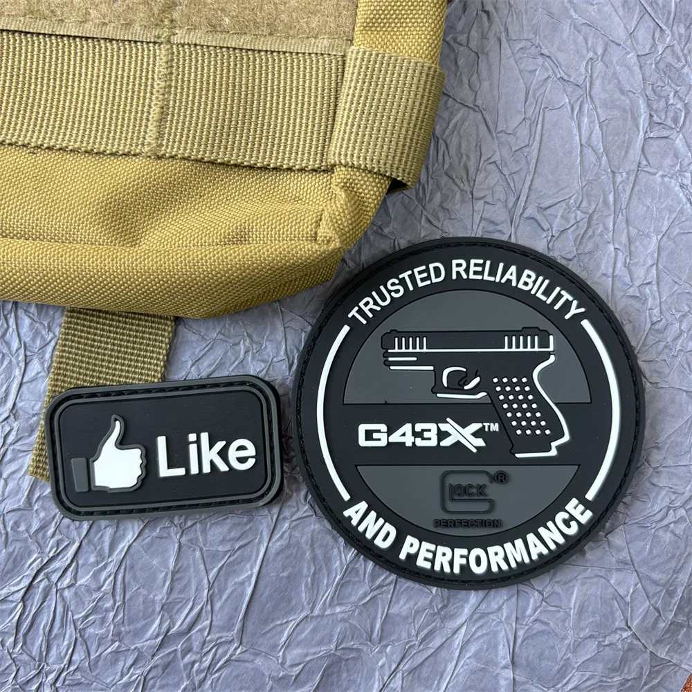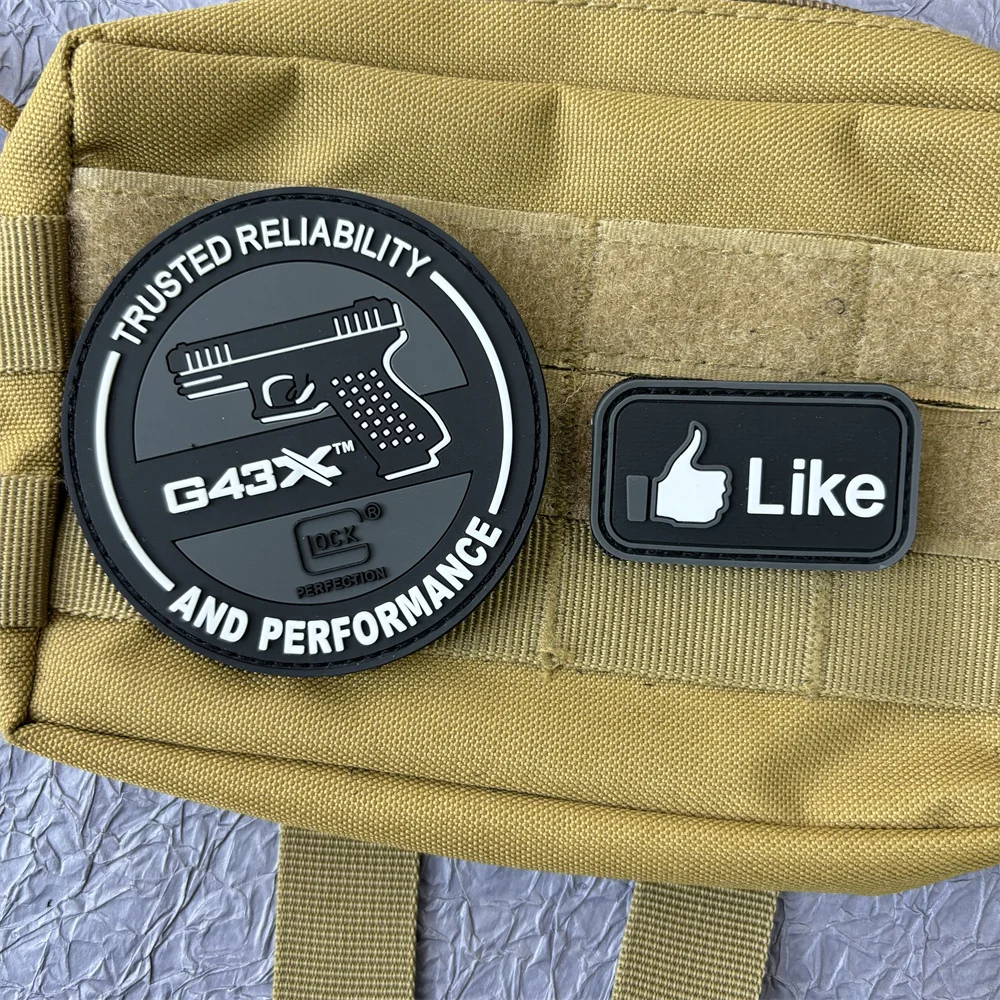 GLOCK G43X Parche de PVC Insignia de moral Pegatinas "Like" Parches de mochila militar táctica Apliques de gancho y bucle