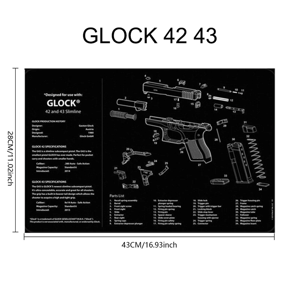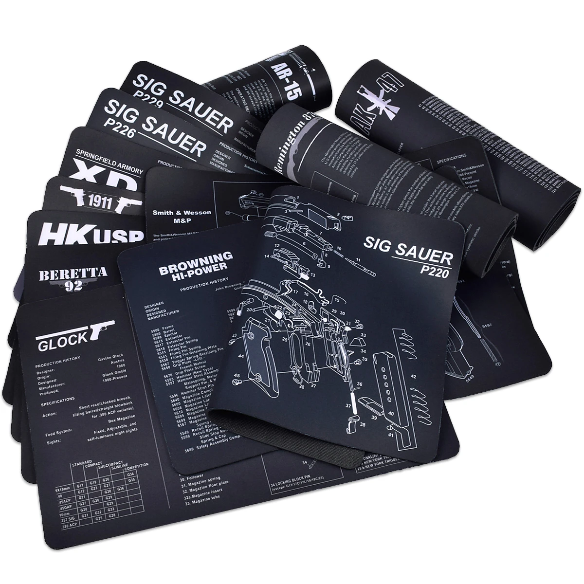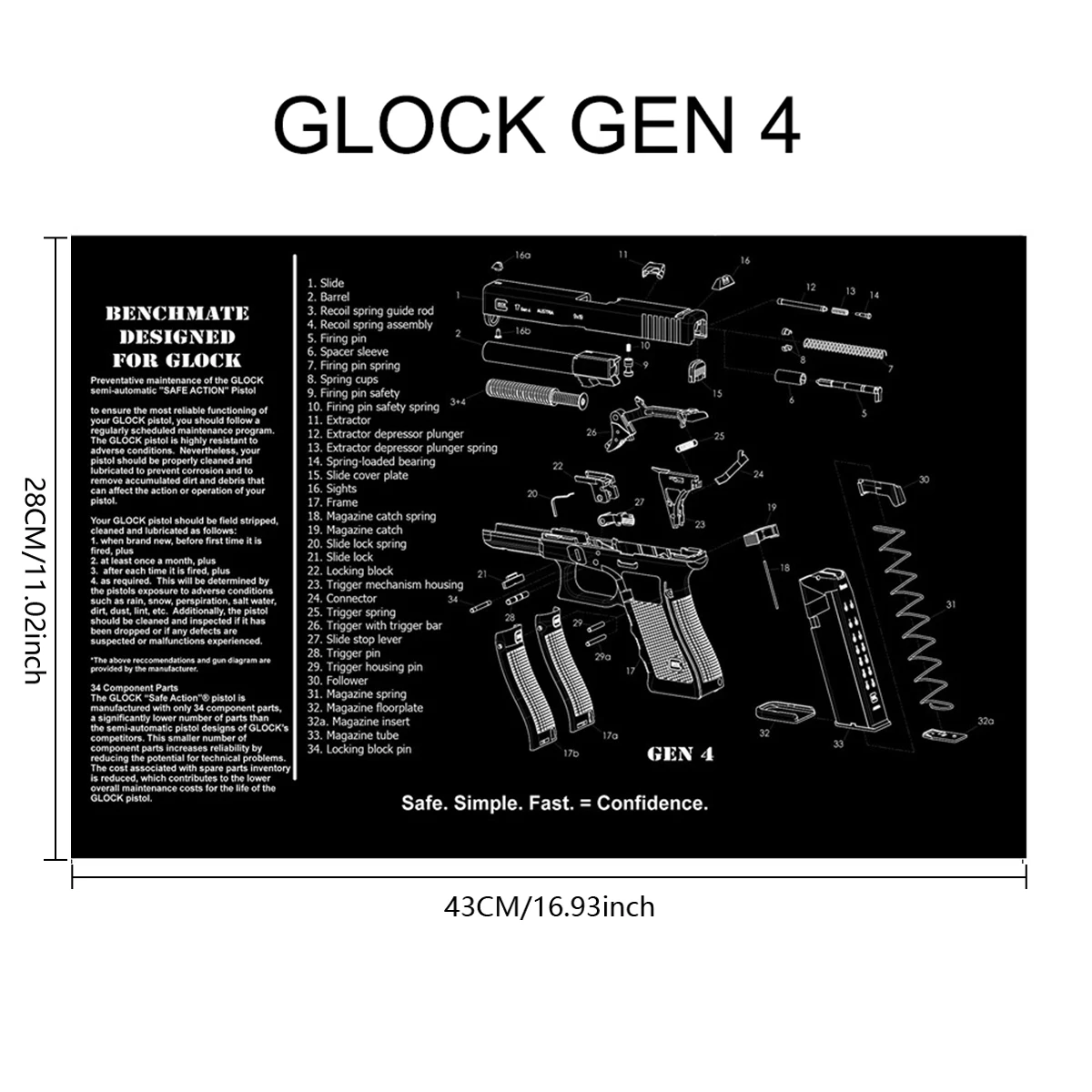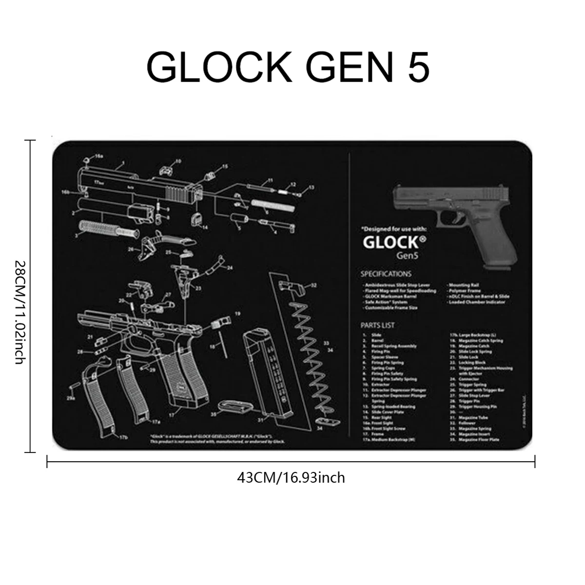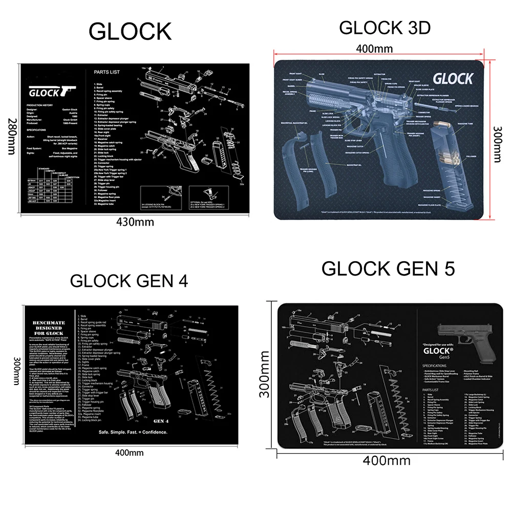 1. Proteja su arma y su área de trabajo: la suave superficie de fibra termoplástica garantiza que su arma no se raye, mientras que la parte posterior de goma de neopreno protegerá su superficie de trabajo y evitará que la alfombra se resbale.2. Pistola de limpieza de alfombras de calidad: esta alfombra de limpieza Glock está fabricada con un estándar exigente que comienza con cero al decoloración a prueba de agua y resistente al aceite de impresión por sublimación, cuyas fibras durarán toda la vida.3.Fácil de usar: esta alfombra de limpieza para pistola viene con una descripción general de la historia de la pistola, así como un diagrama de piezas simple de seguir que representa su pistola y rueda para un fácil almacenamiento.