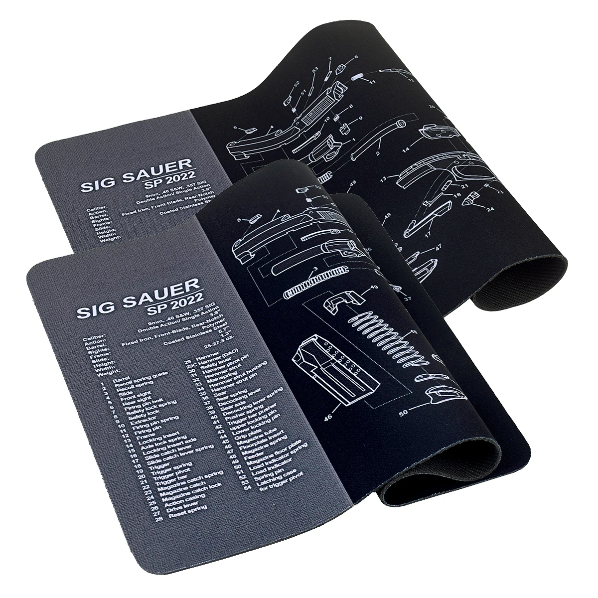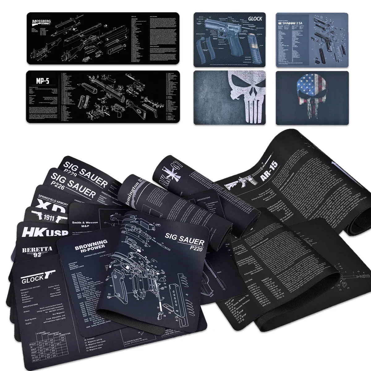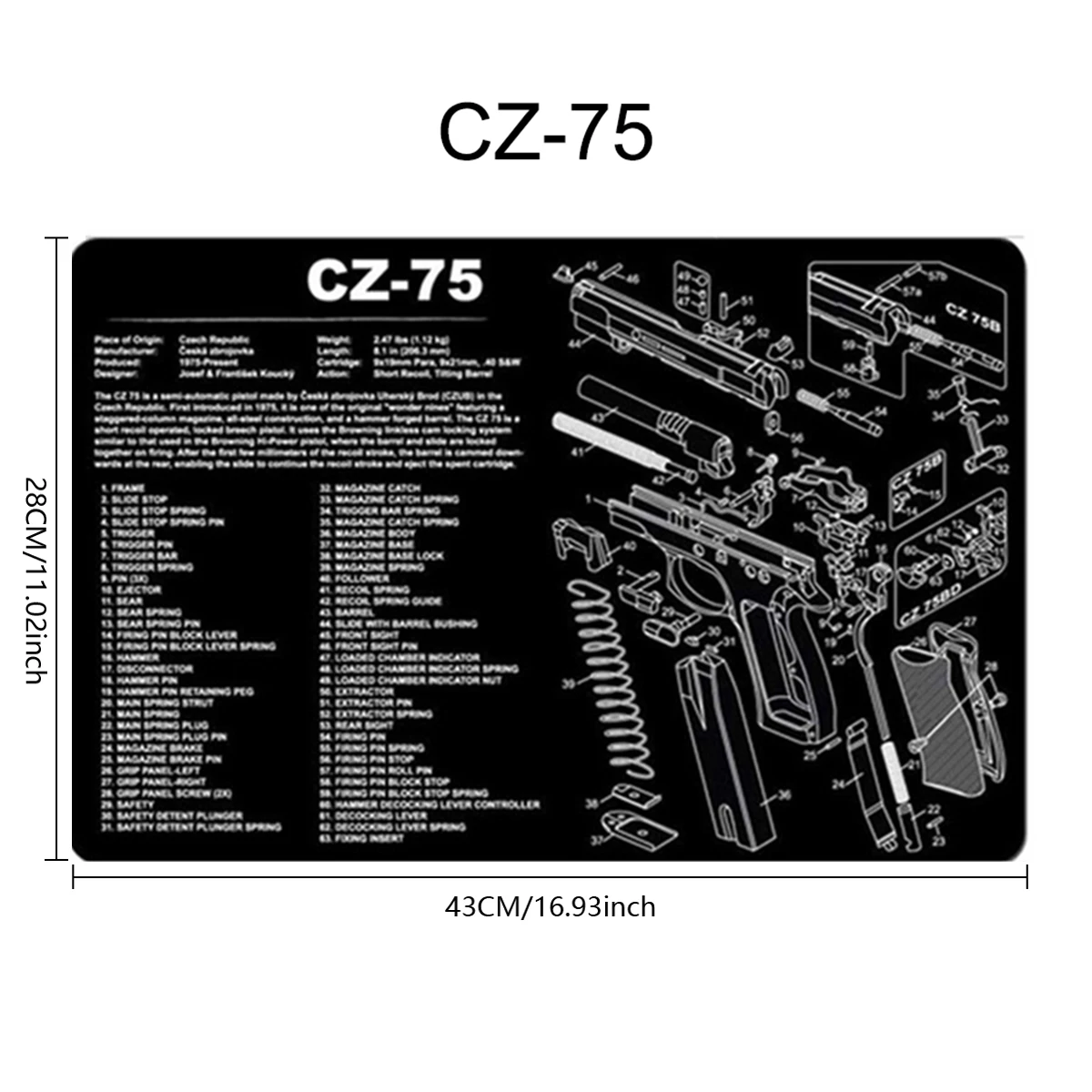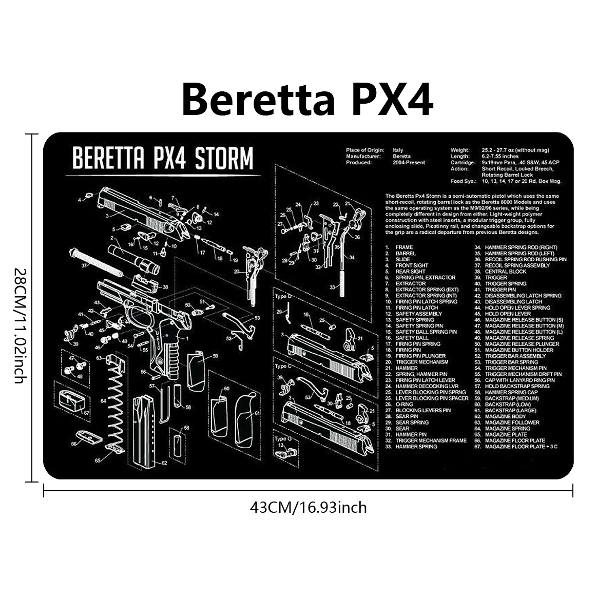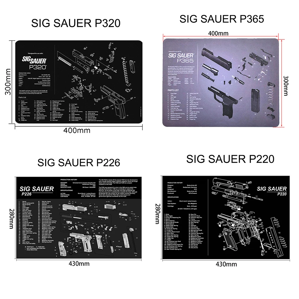 1. Proteja su arma y su área de trabajo: la suave superficie de fibra termoplástica garantiza que su arma no se raye, mientras que la parte posterior de goma de neopreno protegerá su superficie de trabajo y evitará que la alfombra se resbale.2. Pistola de limpieza de alfombras de calidad: esta alfombra de limpieza Glock está fabricada con un estándar exigente que comienza con cero al decoloración a prueba de agua y resistente al aceite de impresión por sublimación, cuyas fibras durarán toda la vida.3.Fácil de usar: esta alfombra de limpieza para pistola viene con una descripción general de la historia de la pistola, así como un diagrama de piezas simple de seguir que representa su pistola y rueda para un fácil almacenamiento.