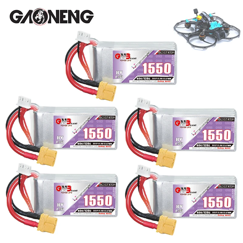 GNB-batería Lipo 3S 11,4 V 1550mAh 60C/120C con XT60 para RC FPV Drone Quadcopter helicóptero RC Parts 11,4 V, batería recargable