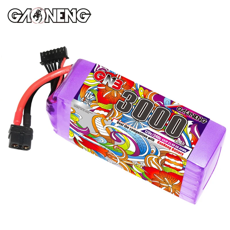 Capacidad: 3000mAhVoltaje: 22,8 V / 6 celdas/6S1PTasa de descarga: 120C continuo/240C ráfagaConector de salida: enchufe T XT60 XT90(Si necesita otros conectores, póngase en contacto conmigo. Gracias)Conector de equilibrio: JST / XH