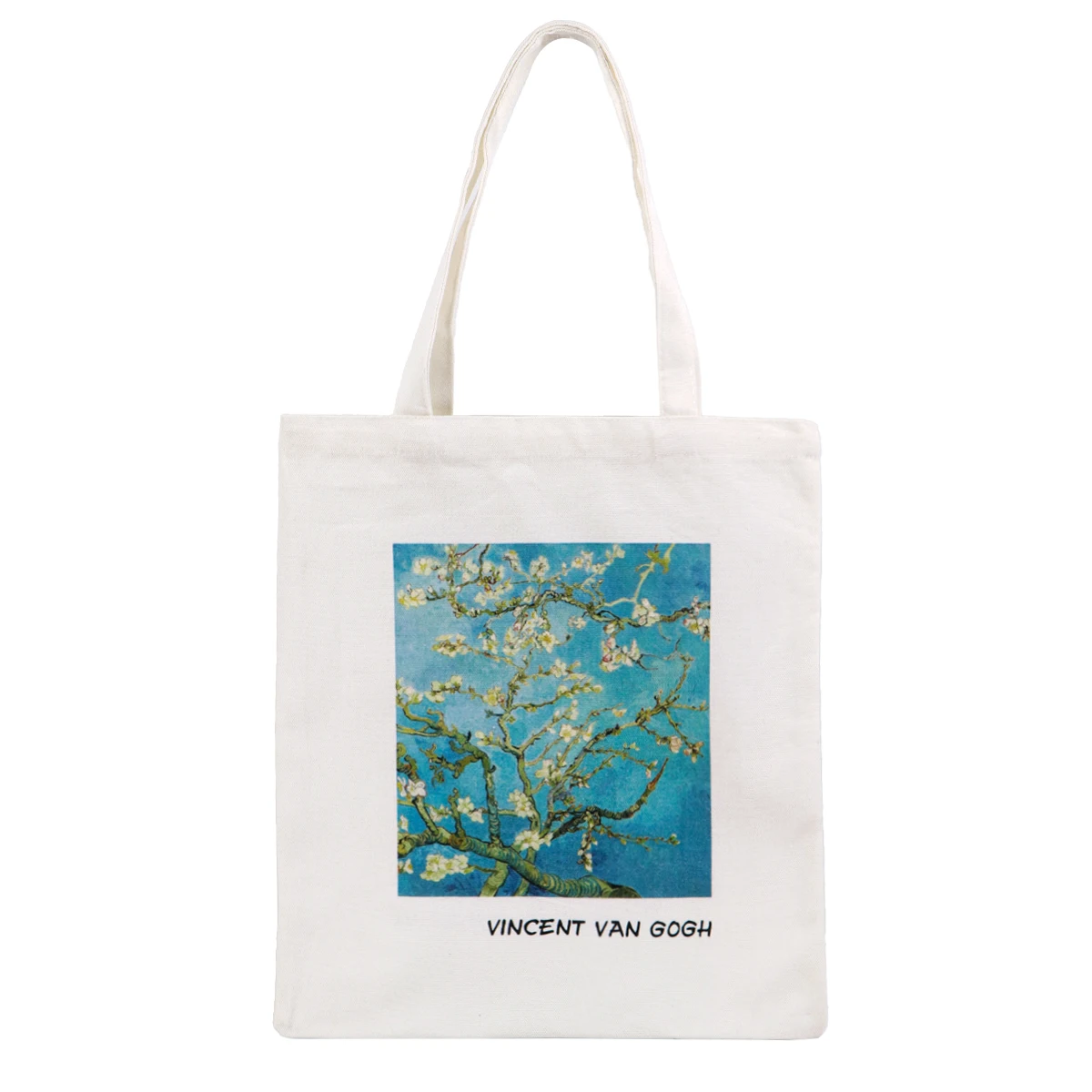 Van Gogh-Bolso de lona con flor de almendra, bolso de mano plegable, organizador de almacenamiento portátil, bolso de compras para mujer, bolso de hombro escolar