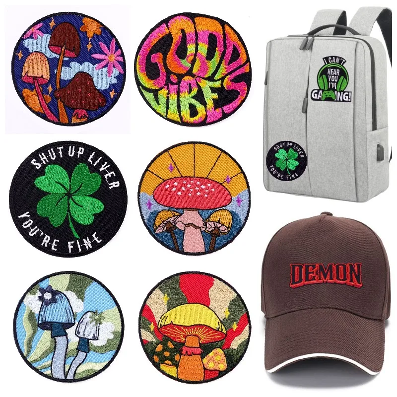 GOOD VIBES Parches bordados Termoadhesivo Iron-on Parche para ropa Setas Apliques en tela Pegatinas redondas en mochila